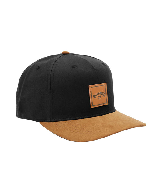 Billabong 6 Panel Mens Snapback Curved Peak Cap ~ Stacked black tan