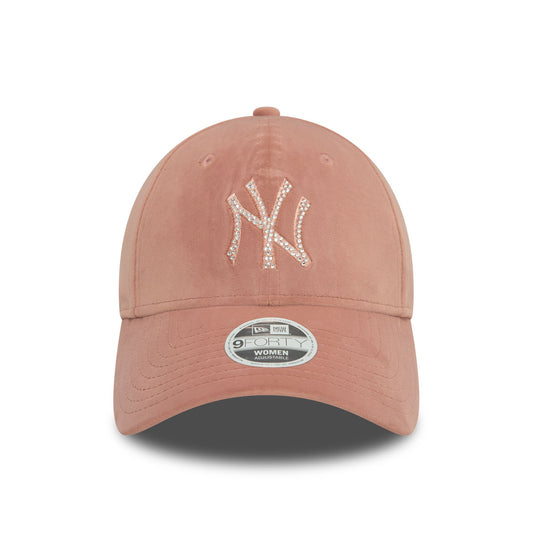 New York Yankees Womens Velour Diamante Pastel Pink 9FORTY Adjustable Cap