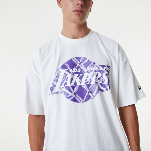 New Era Mens NBA Infill Logo OS T-Shirt ~ LA Lakers White