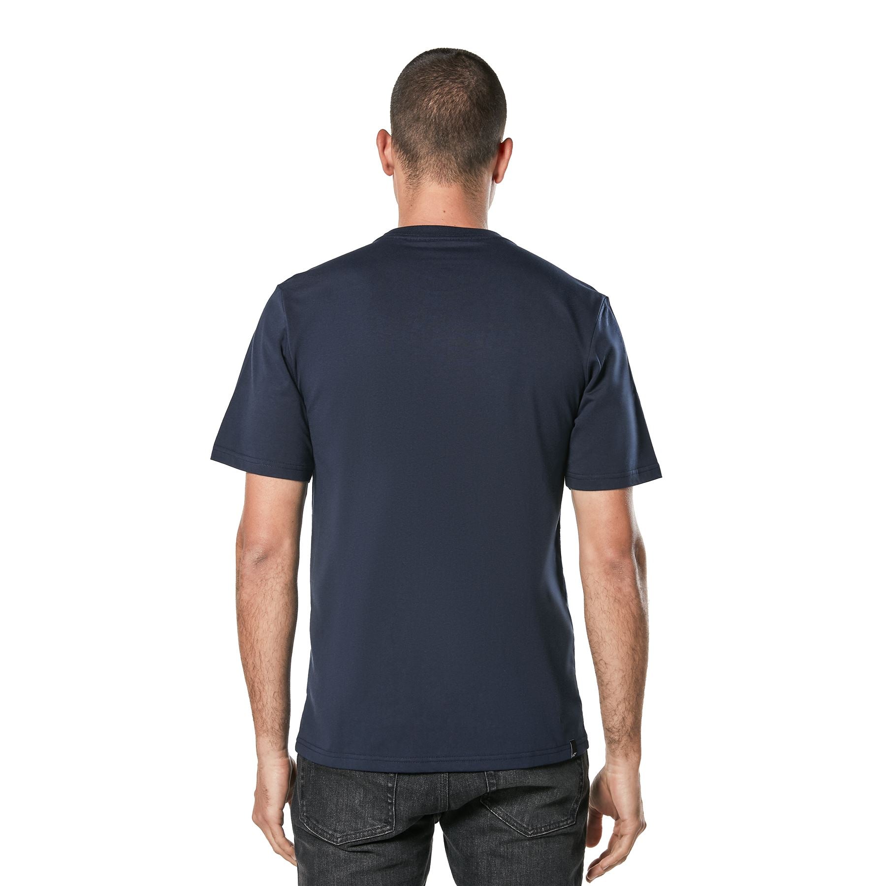 Alpinestars Blaze Astars logo on front. Soft hand print internal neck print. External Alpinestars labelling. Classic fit. Colour is navy blue