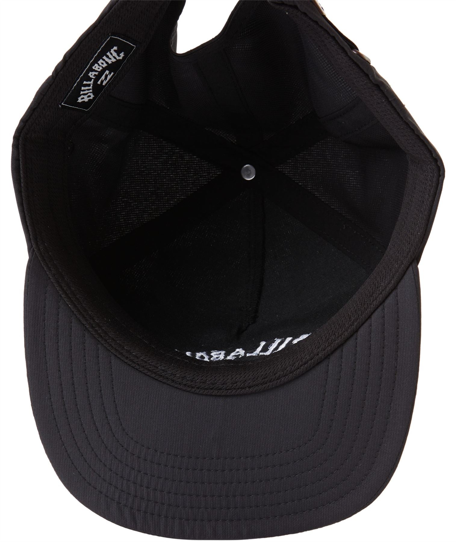 Embroidered Billabong name and logo on front. Flat bill. Adjustable rear fastener with metal clip. Recycled polyester fabric. Colour black