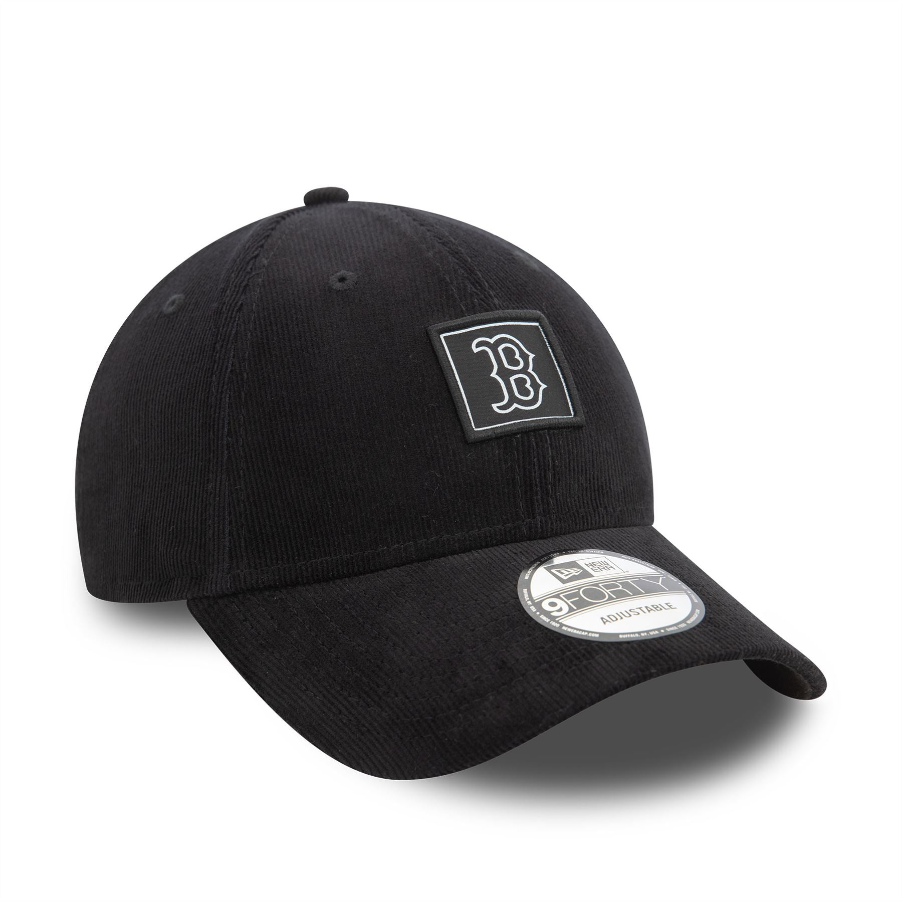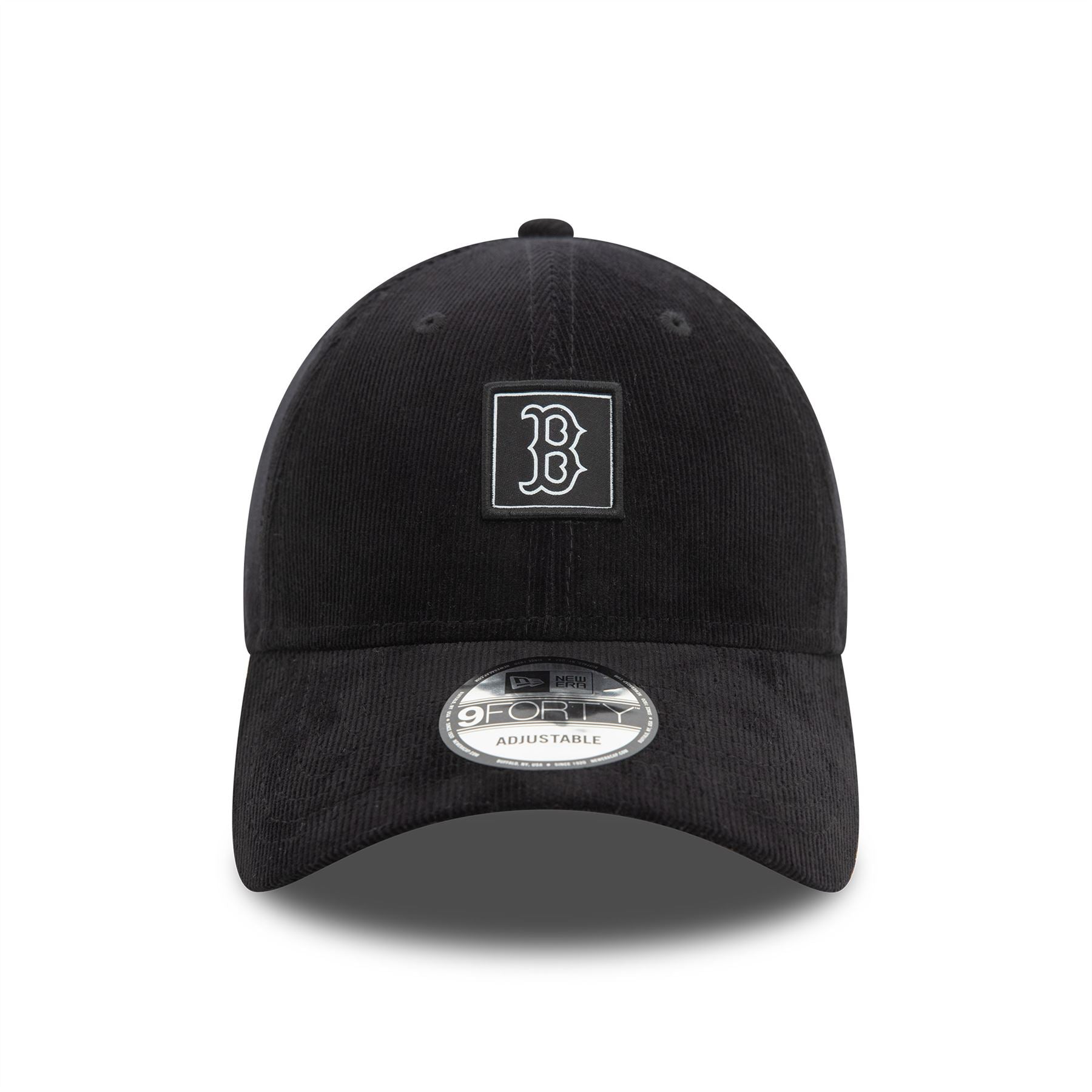 Cord Patch Boston Red Sox 9FORTY Cap.Boston Red Sox logo patch on front.Made with cord fabric. Embroidered New Era flag on left. 6 panel structured crown. Curved visor with rear strapback fastener. Black Cap with black undervisor.