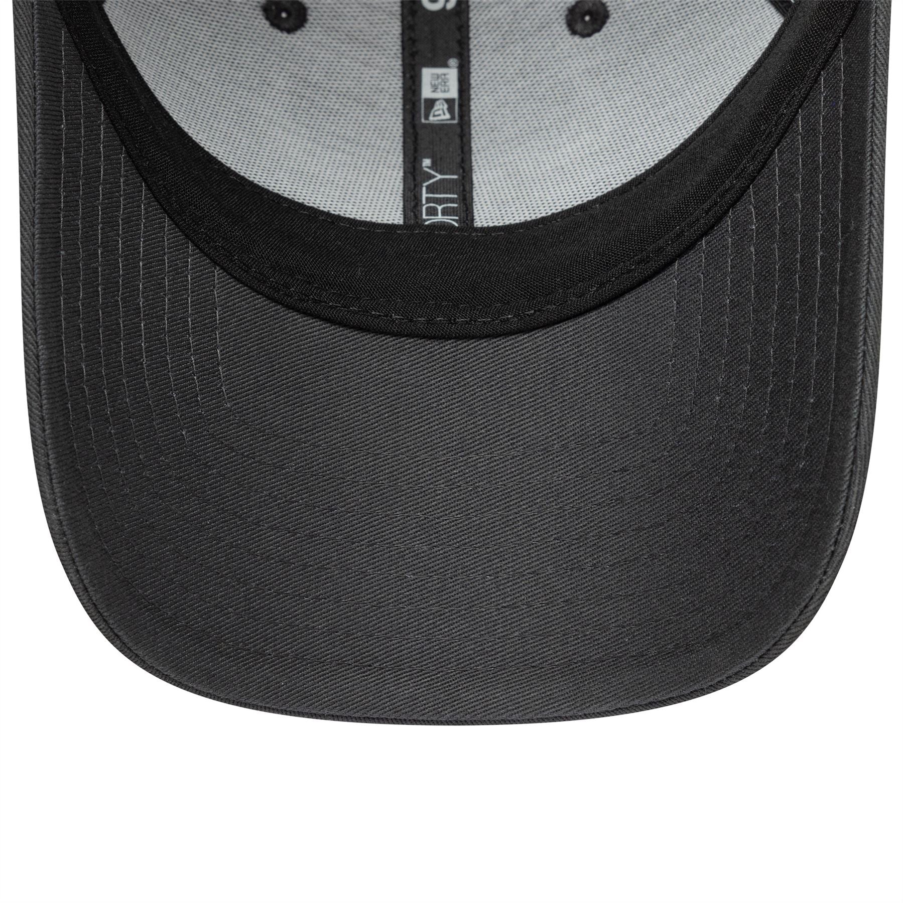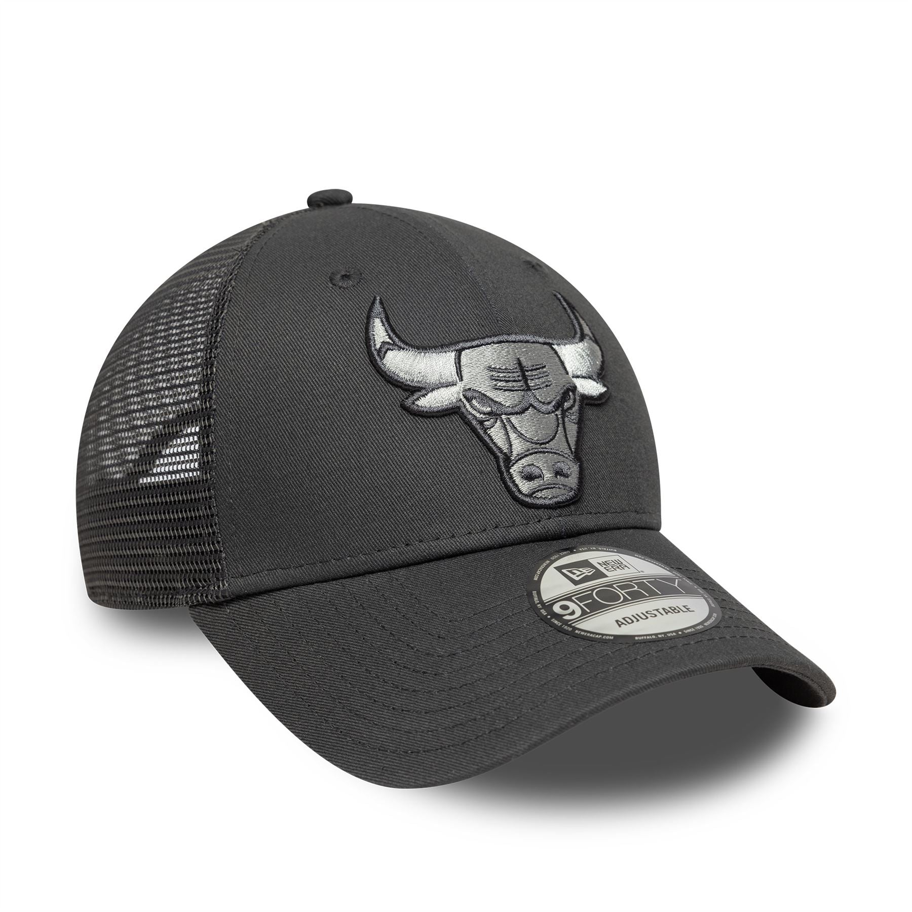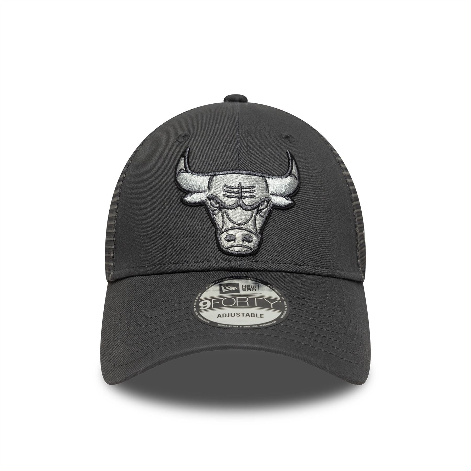 Embroidered Chicago Bulls logo on front. Embroidered Chicago Bulls woven label on back. Embroidered New Era flag on left. 6 panel structured crown. Curved visor with rear adjustable fastener. Mesh back and rear sides. Dark grey Cap with dark grey undervisor.