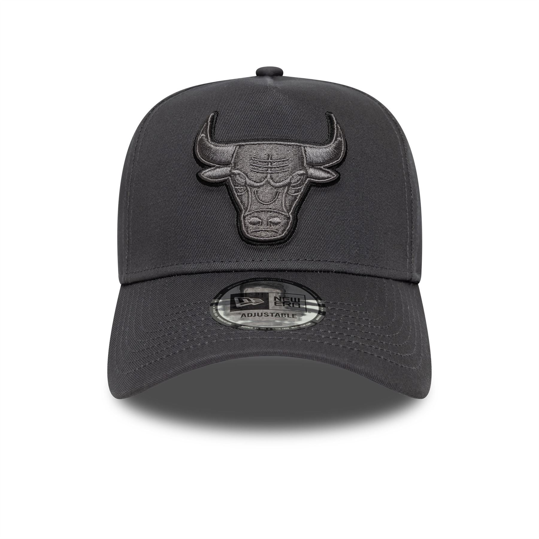 Embroidered Chicago Bulls logo on front. Embroidered New Era flag on left. 6 panel structured E-Frame crown. Curved visor with rear snapback fastener. Dark grey Cap with dark grey undervisor.