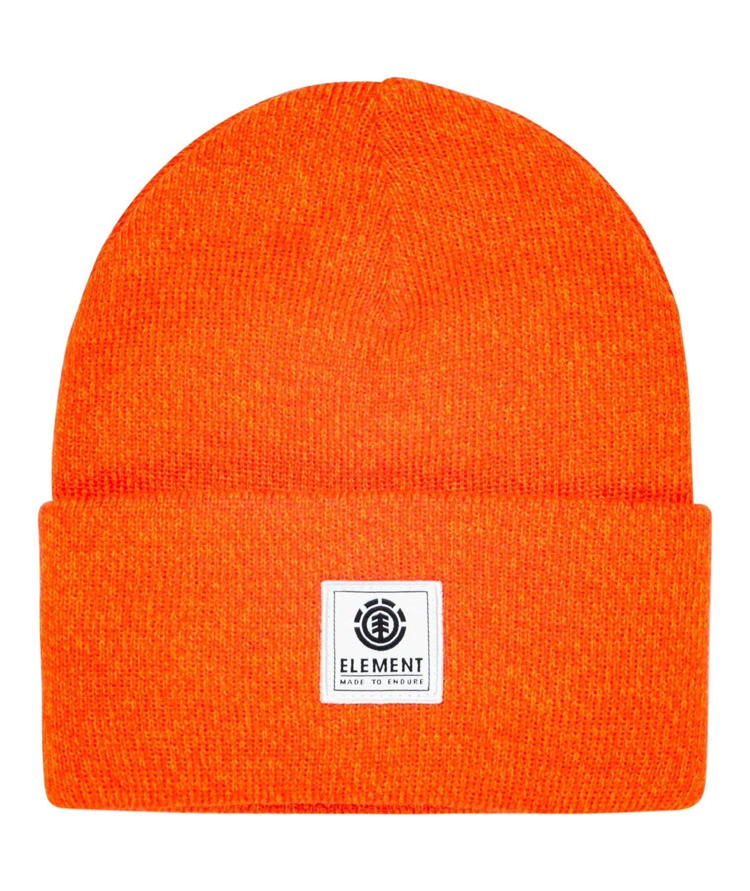 Woven Element name logo design label on cuff. Knitted design. Roll-up Cuff that can be turned down. Double thickness. Colour orange