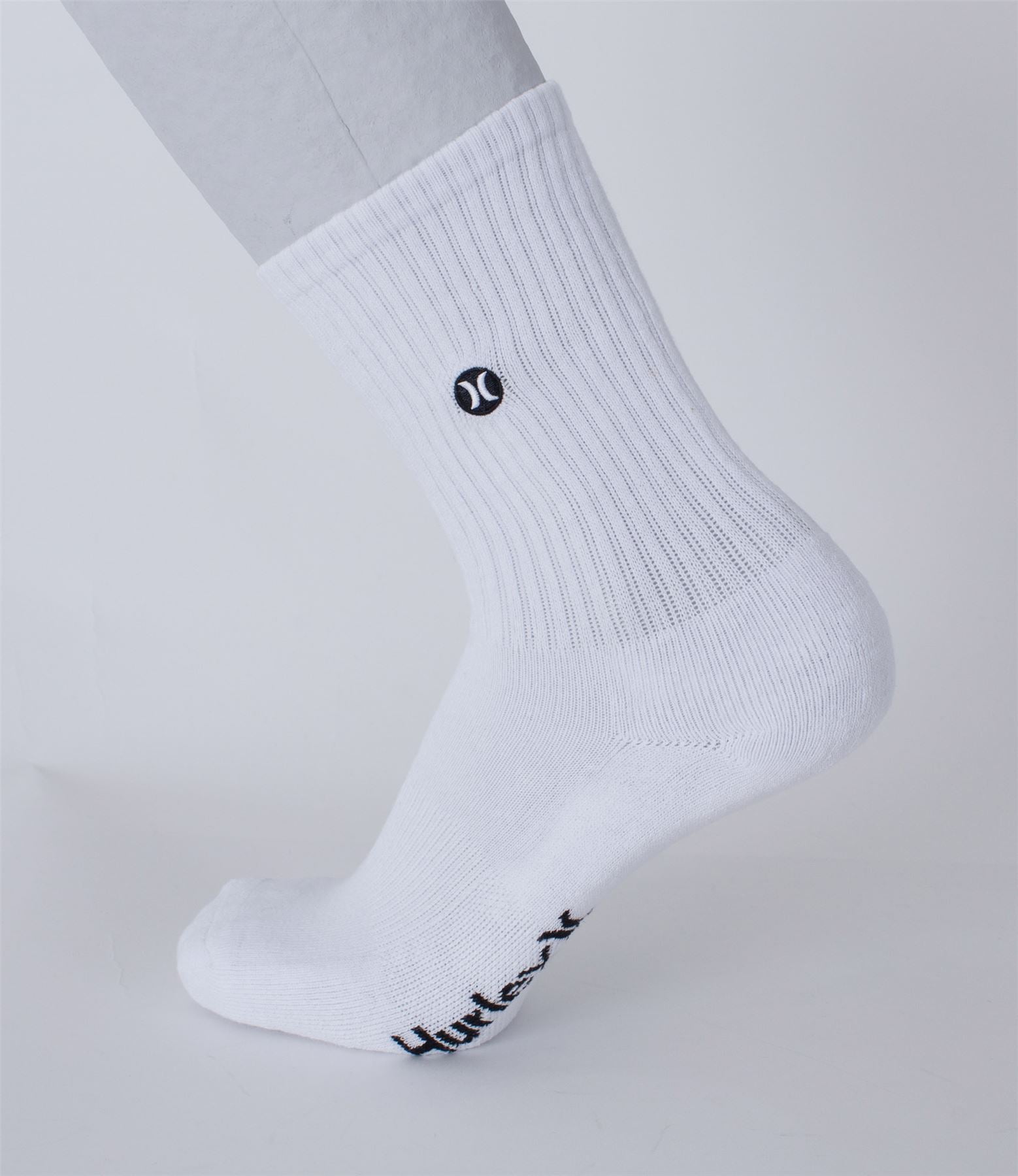 3 socks in 1 pack. Woven Hurley Icon logo on leg and woven Hurley name logo on foot. Made with H20-Dri fabric that wicks away sweat to keep you dry and comfortable. A sock height that hits the mid-point of your lower leg. Deep Heel Pockets with Engineered Arch Support. Seamless Toe Closure for an anti-friction finish your feet will love. Colour white