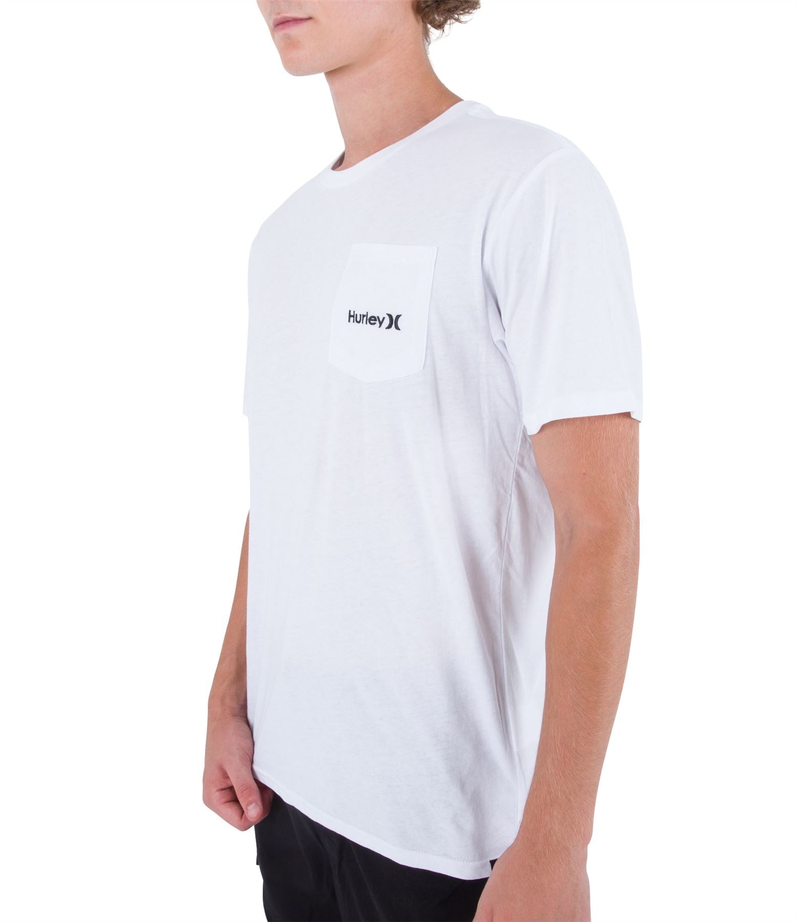 Hurley Mens Cotton SS T-Shirt ~ One & Only Pocket white