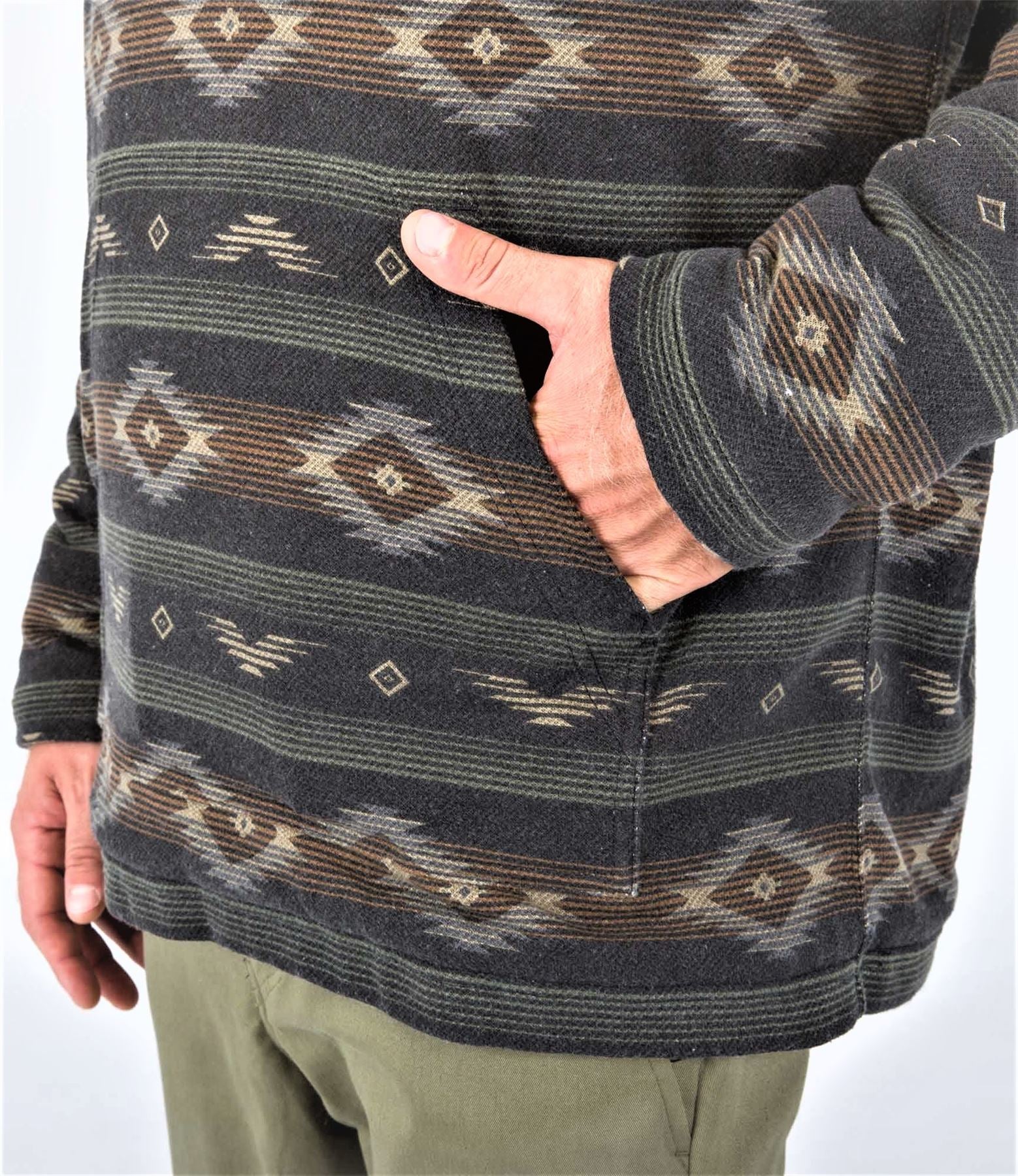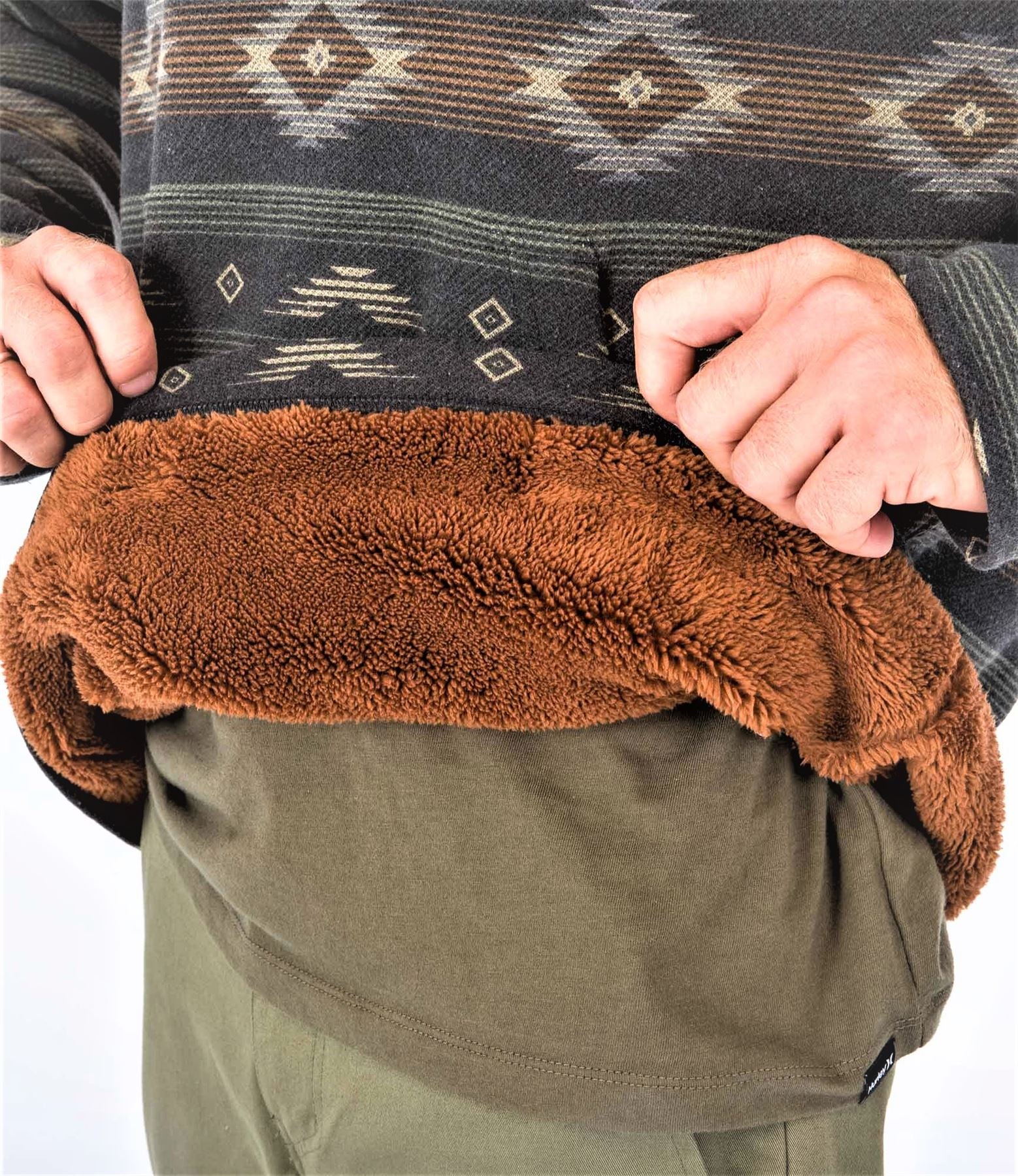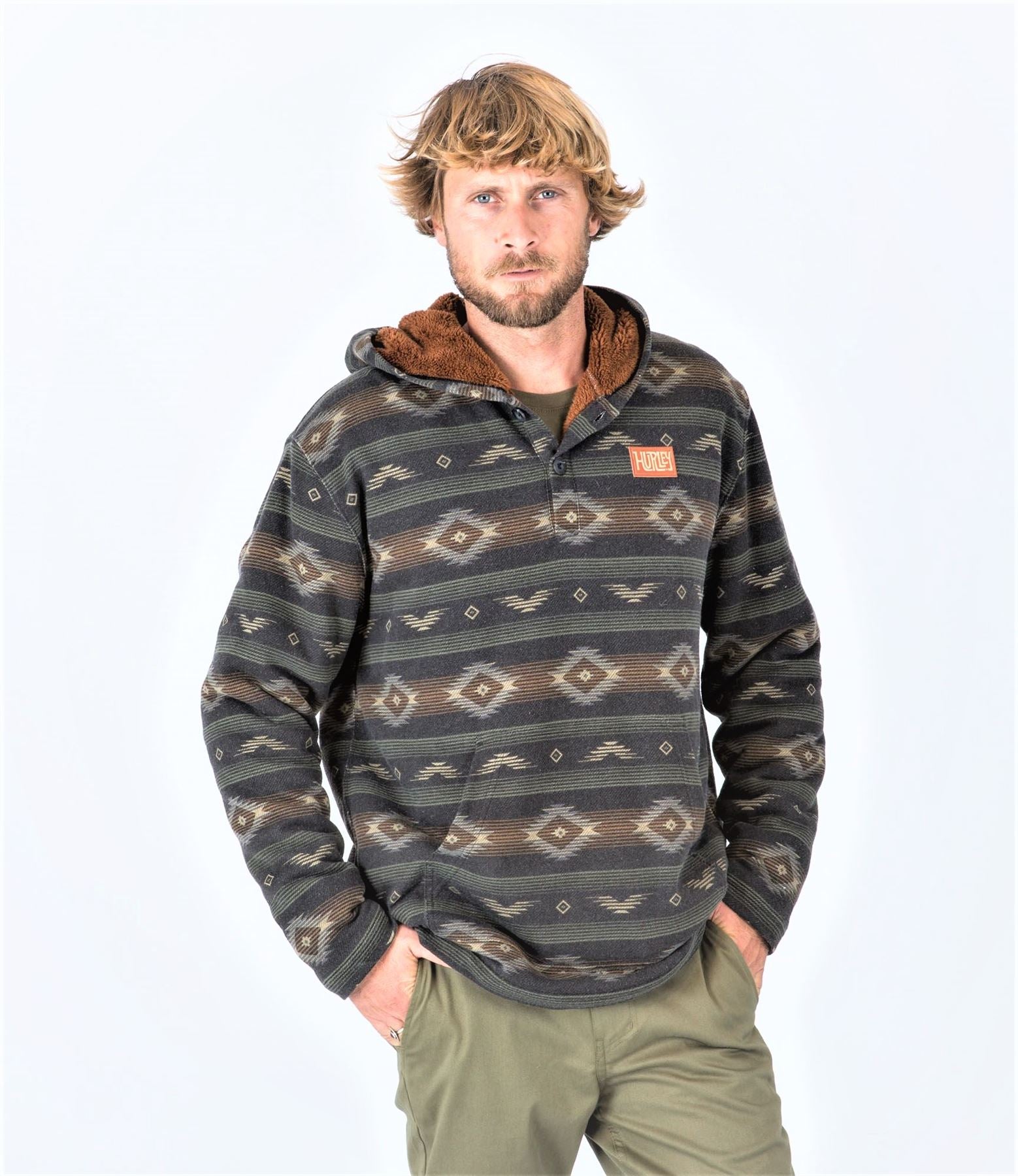 The Modern Surf Poncho Sherpa sweatshirt is made with French terry fabric and warm sherpa lining for warmth and softness on cold days. The yarn-dyed print fabric adds a touch of style. Front Hurley leather patch. Colour brown.