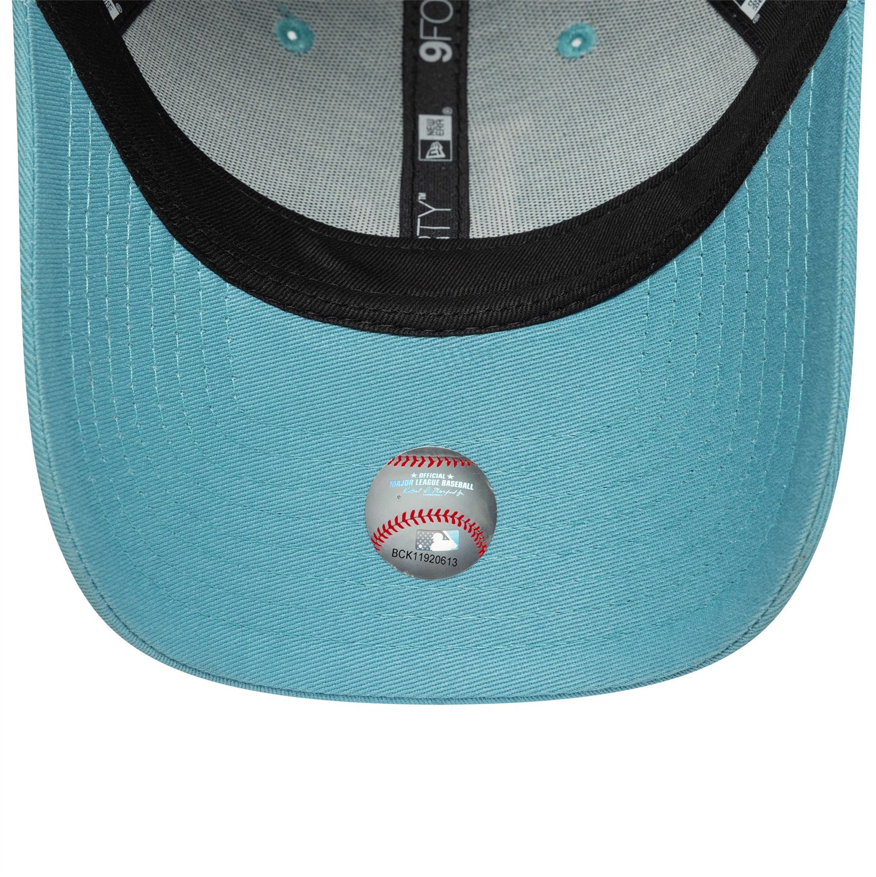 Embroidered LA Dodgers logo on front. Embroidered New Era flag on left. 6 panel structured crown. Curved visor with rear strapback fastener. 100% cotton. Pastel blue Cap with pastel blue undervisor.