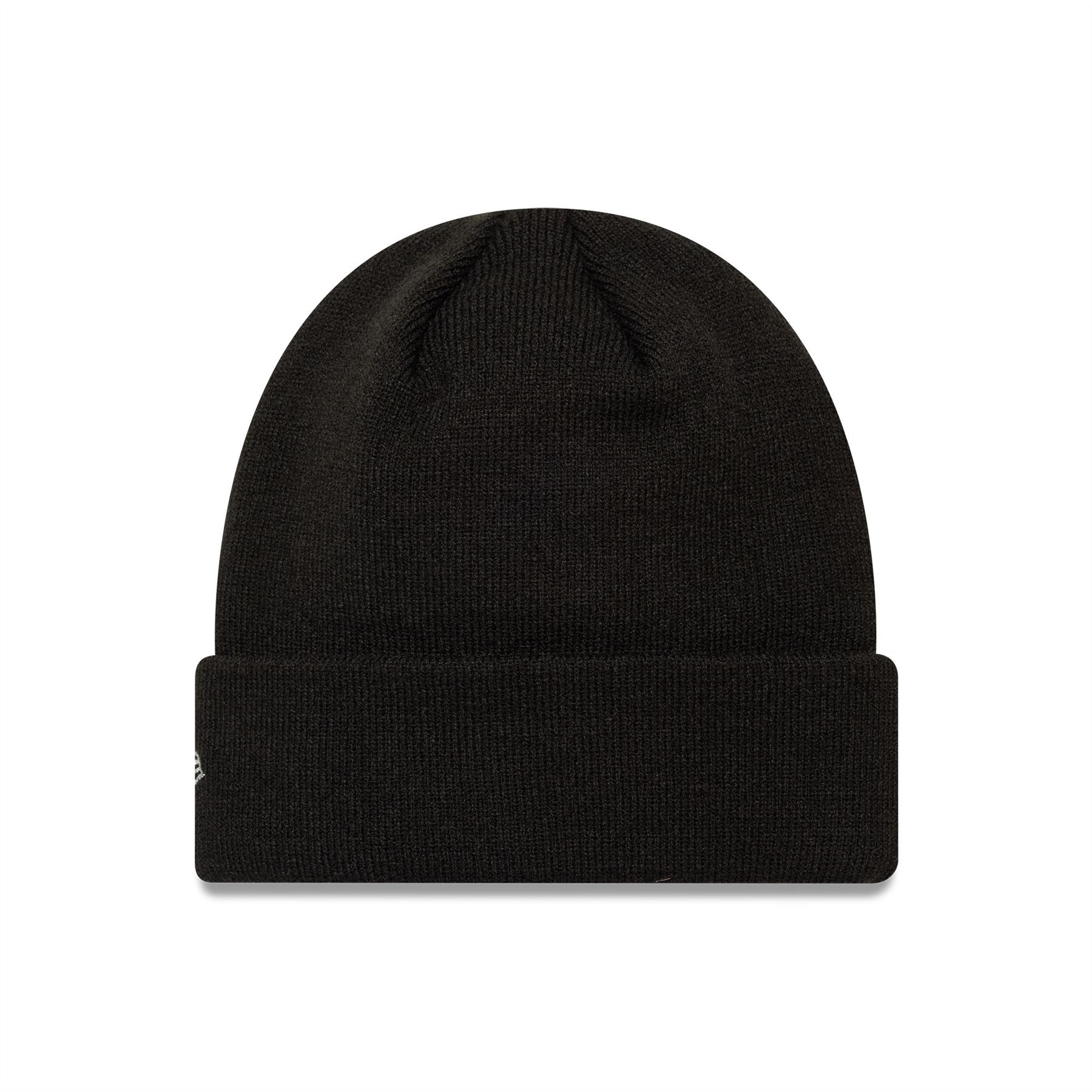 Embroidered metallic 'Las Vegas Raiders' logo on front. Embroidered New Era flag on left. Knitted crown with upturned cuff. 100% Acrylic. Colour black