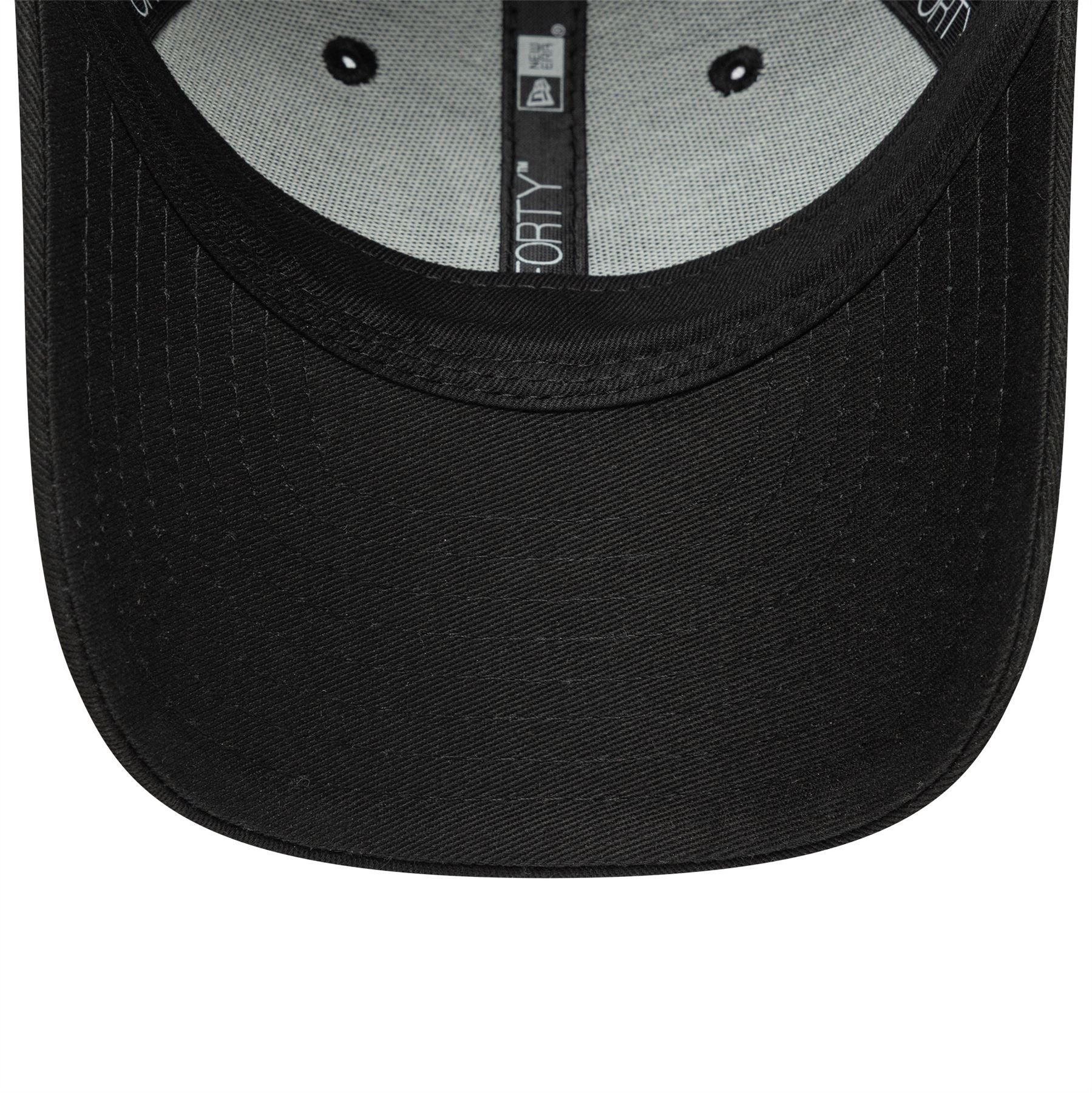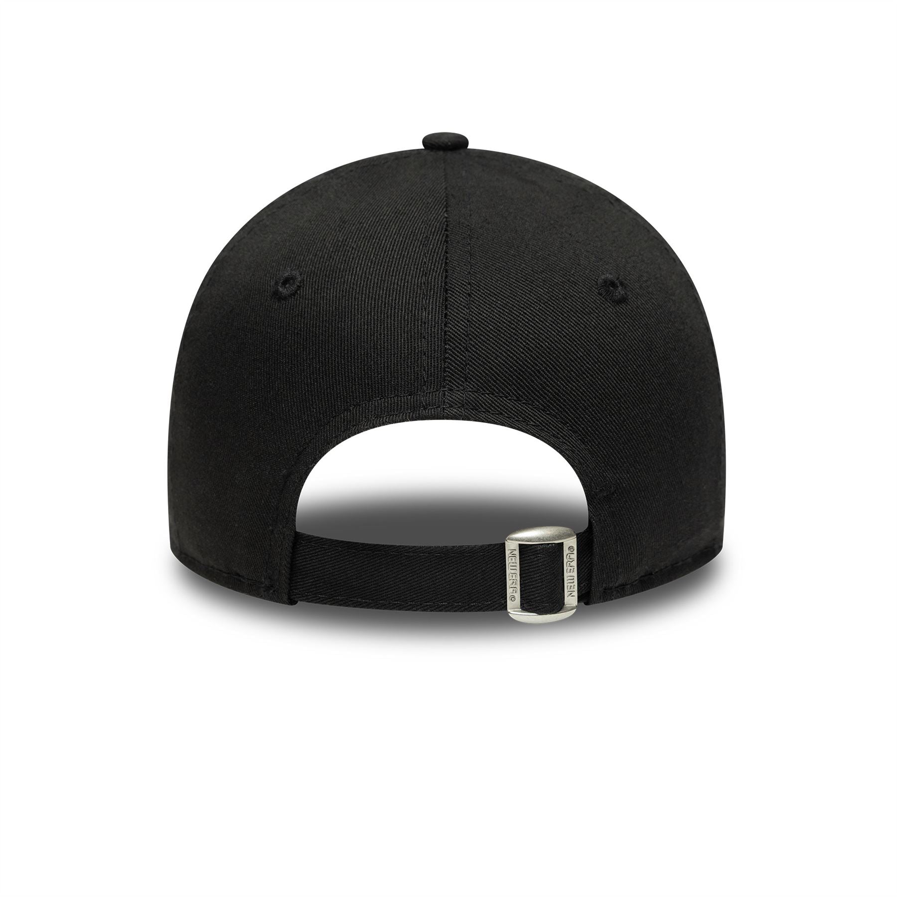 Youth Cap. Embroidered Liverpool FC logo on front. Embroidered New Era flag on left. 6 panel structured crown. Curved visor with rear strapback fastener. Black Cap with black undervisor.
