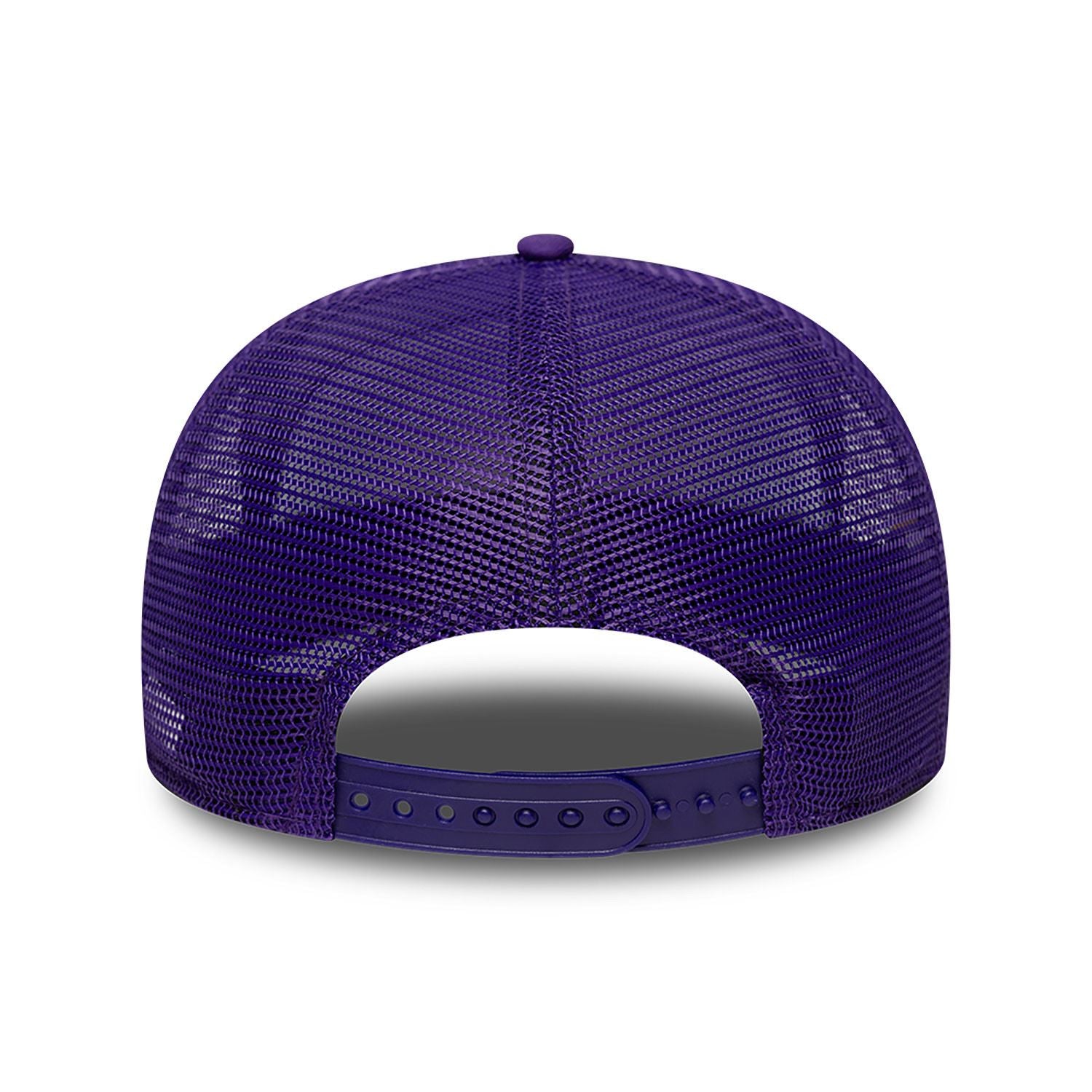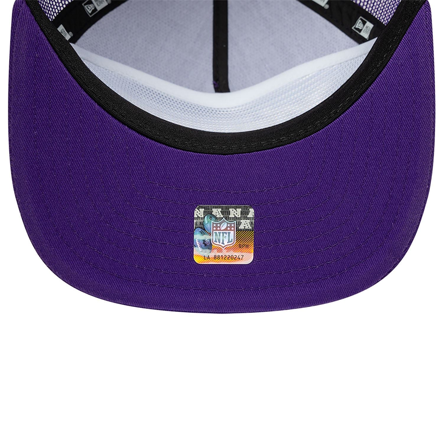NFL International Series Games 2024 Minnesota Vikings Golfer Cap. Minnesota Vikings wordmark logo on front. Minnesota Vikings sidepatch on right. Mesh back and sides. Embroidered New Era flag on left. 6 panel unstructured crown so you can fold the cap into a bag. Flat visor with rear snapback fastener. Purple Cap with purple undervisor