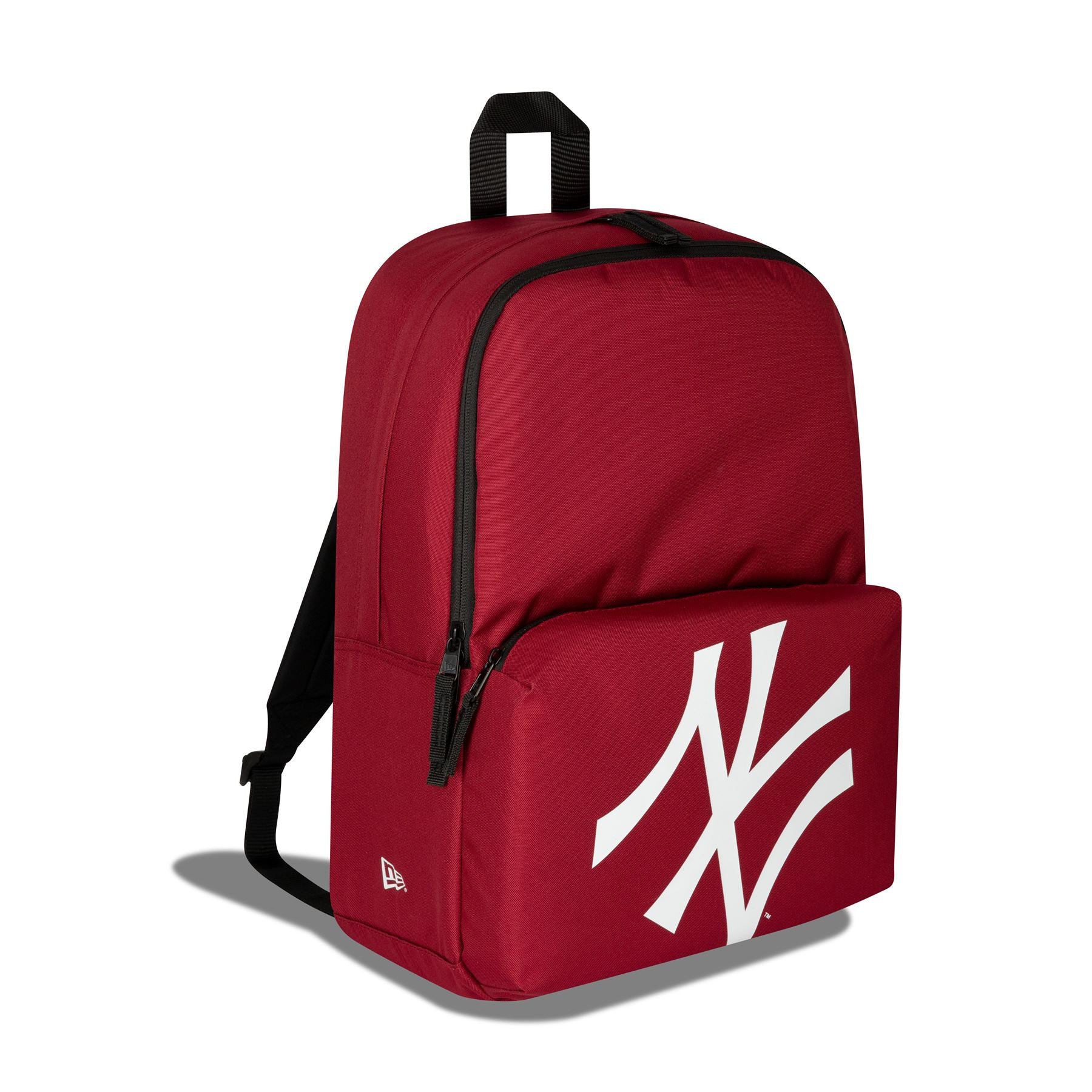 Official Adult New Era New York Yankees Disti Multi Stadium Bag 600D Polyester. Printed ‘New York Yankees’ logo on front. Printed MLB logo on left side and printed New Era flag on right side.2 main zip compartments. Front zip pocket. Adjustable shoulder strapsv with woven New Era flag. . 21.5 litres capacity in colour red.