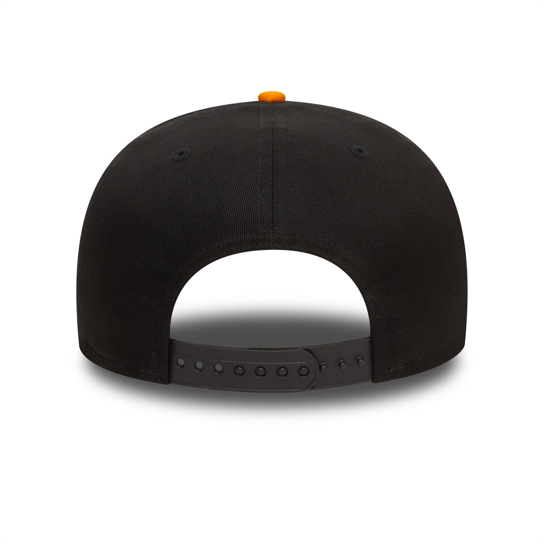 Essentials McLaren Racing 9FIFTY Cap. Embroidered McLaren Racing wordmark logo on front. Embroidered New Era flag on left. 6 panel structured crown. Flat visor with rear snapback fastener. Cap colour black with orange undervisor.
