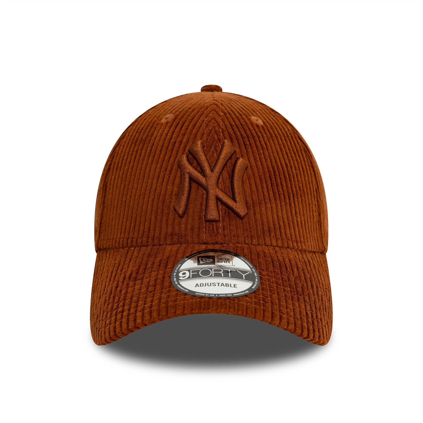 Official New Era Mens New York Yankees 9Forty Cord Cap. New York Yankees logo on front. Embroidered New Era flag on left. 6 panel structured crown. Curved cord visor with rear strapback fastener. Made with cord fabric. Cap colour brown with brown fabric undervisor.