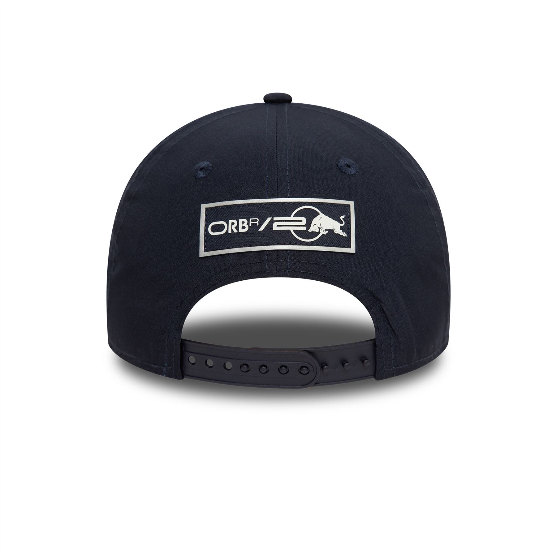 Official New Era eam Red Bull Racing 9FORTY Cap. Oracle Red Bull Racing logo on front. Orb R/2 Red Bull logo on rear arch. Patterened front left panel. Embroidered New Era flag on left. 6 panel structured crown. Curved visor with rear snapback fastener. Cap colour blue with blue undervisor.