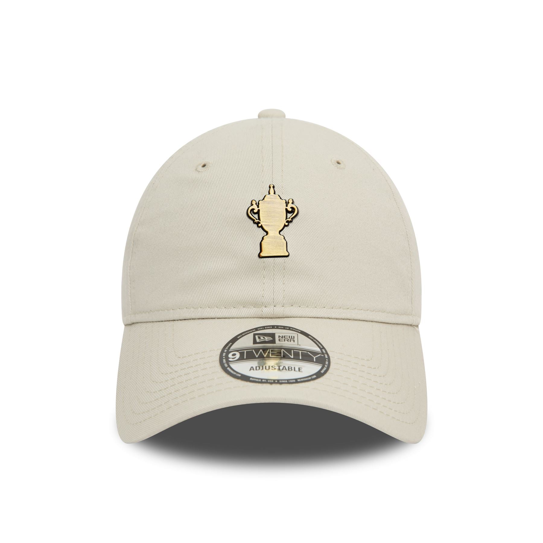 Official New Era Mens Adjustable 9Twenty RFU Webb Ellis Trophy Cup Cap. Metal ‘Webb Ellis Trophy Cup’ on front. Embroidered New Era flag on left. 6 panel unstructured crown. Curved visor with rear adjustable strapback fastener. Undervisor colour Stone. Cap colour Stone.