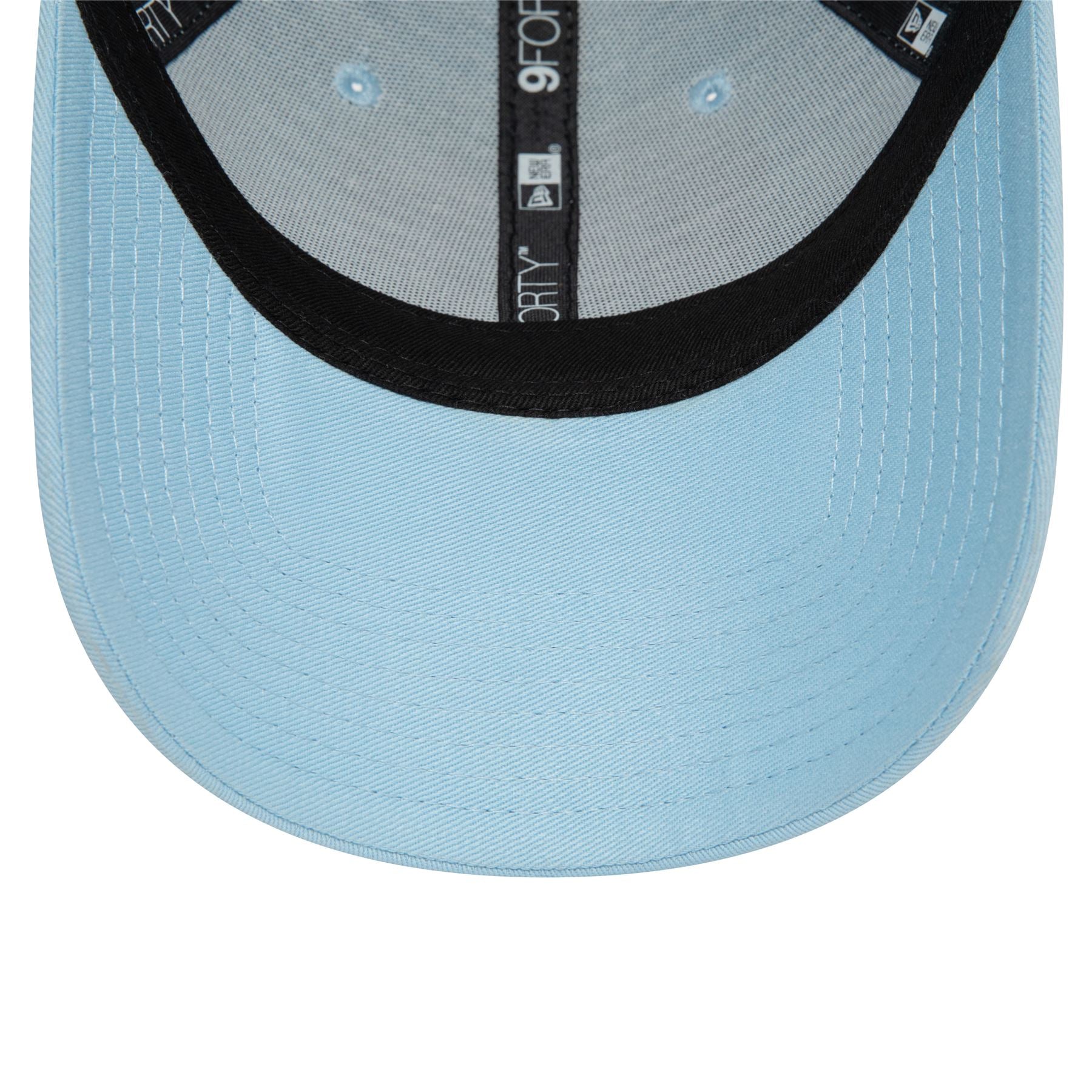 Official New Era Mens Essential 9Forty Cap. Embroidered New Era flag on left. 6 panel structured crown. Curved visor with rear strapback fastener. Cap colour light blue with light blue undervisor.