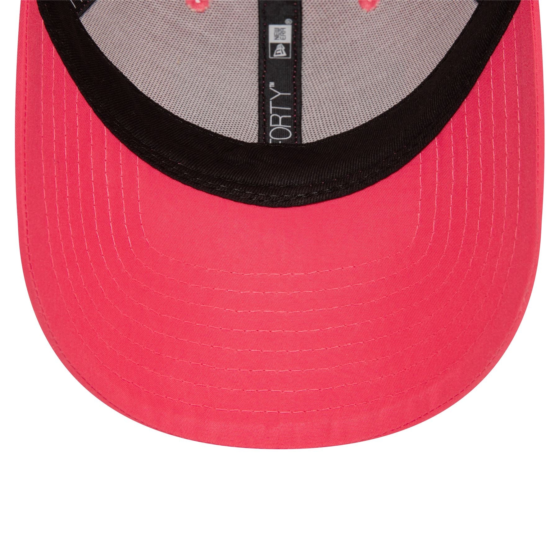 Official New Era Mens Flawless Logo 9Forty New York Yankees Cap. Embroidered silver New York Yankees logo on left side front panel. Embroidered New Era flag on left. 6 panel structured crown. Curved visor with rear strapback fastener. Cap colour pink with pink undervisor.