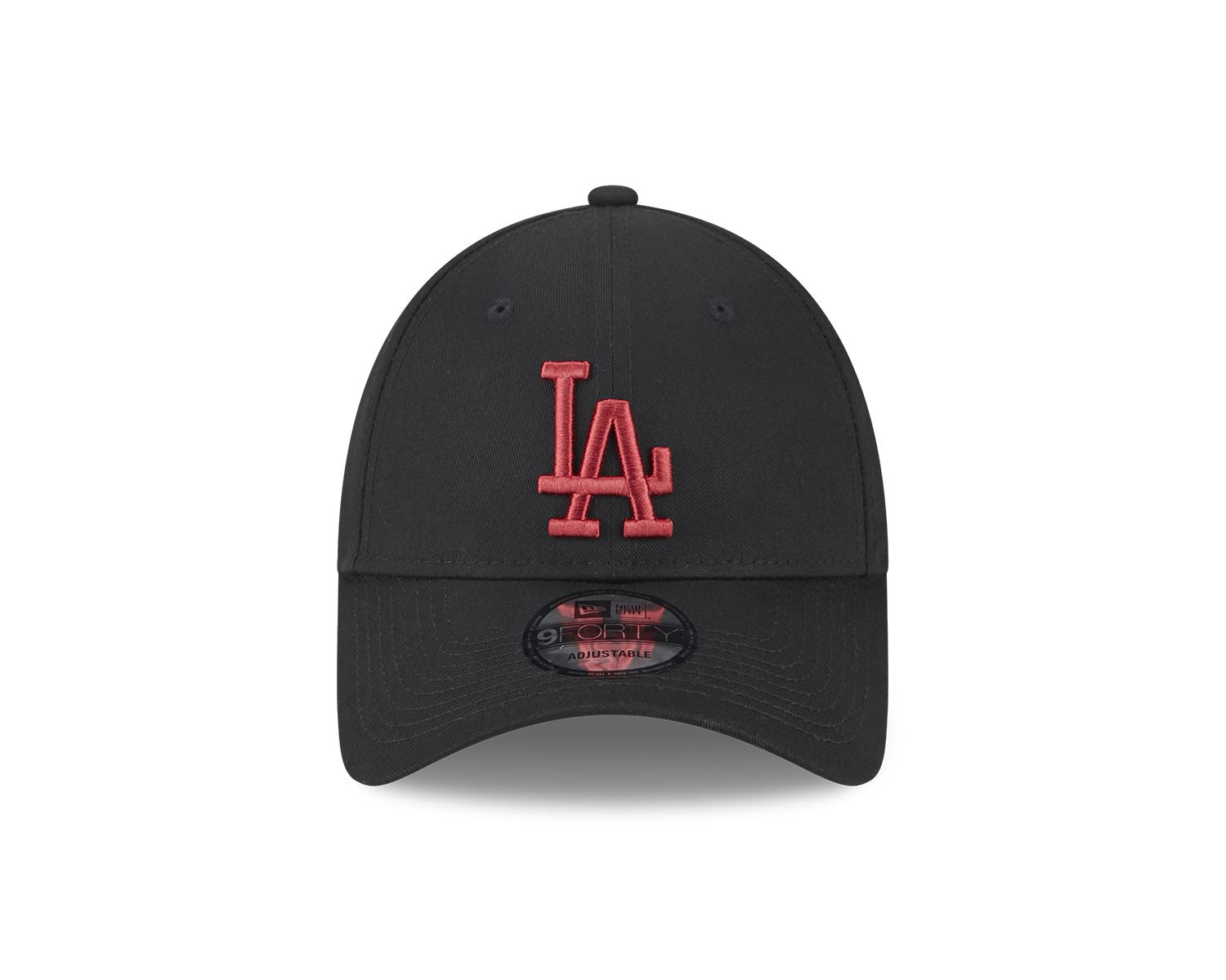 Official New Era Mens League Essential 940 Adjustable Cap. Embroidered 'LA Dodgers' logo on front. Embroidered New Era flag on left. 6 panel structured crown. Curved visor with rear snapback fastener. Black undervisor. Colour Black.