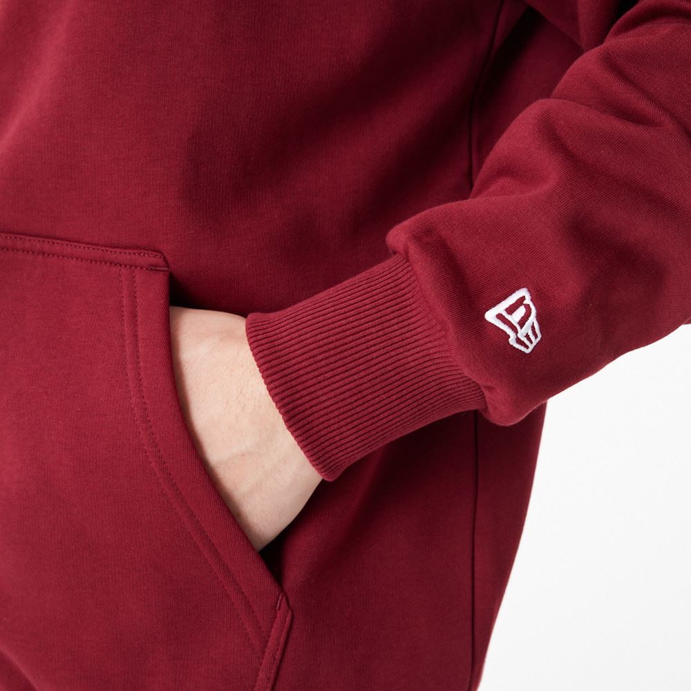League Essential LA Dodgers Full Zip Hoodie. Embroidered 'LA Dodgers' logo on left chest. Embroidered New Era flag on left sleeve. Pockets on front left and right. Drawstring hood. Full zip closure. Oversized fit. 80% Cotton, 20% Polyester. Colour cardinal red.