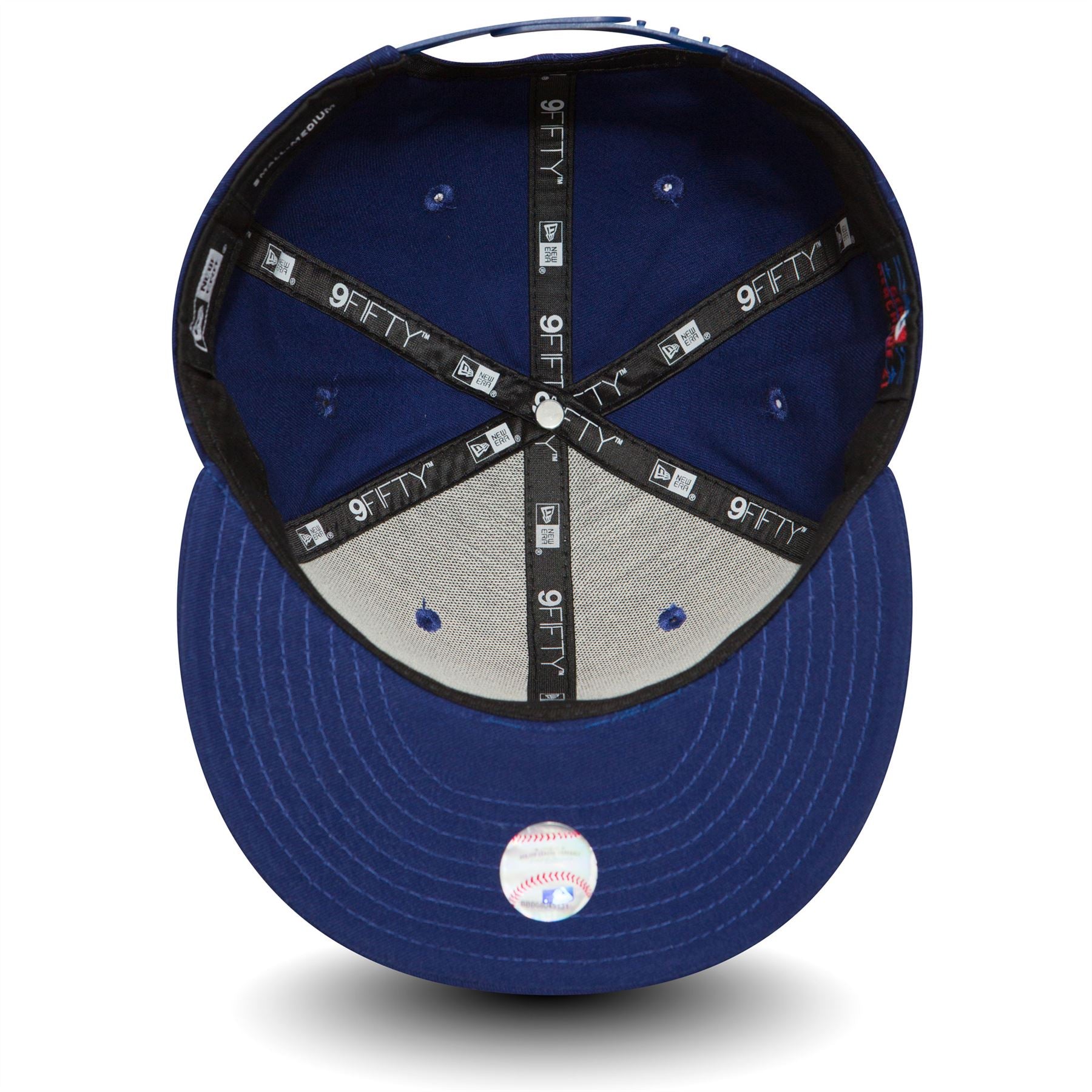 Official New Era Mens MLB LA Dodgers Snapback 9Fifty Cap. Embroidered 'LA Dodgers' logo on front. Embroidered New Era flag on left. 6 panel structured crown. Flat visor with rear snapback fastener. Undervisor colour blue. Cap colour blue.