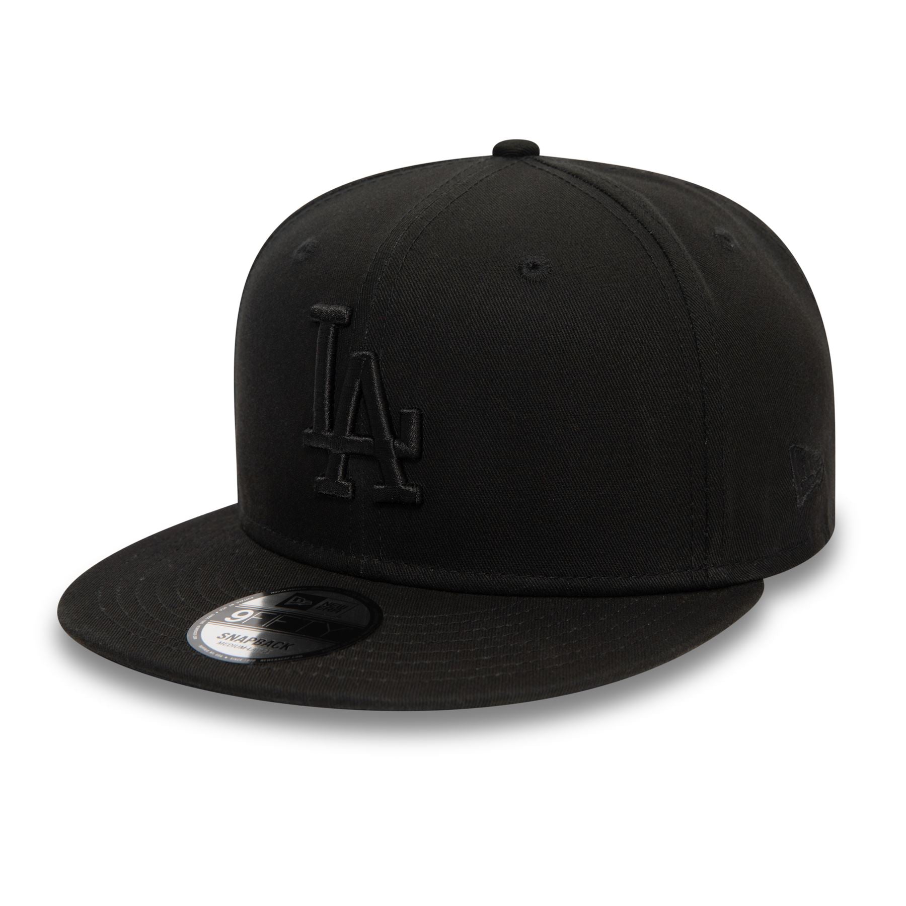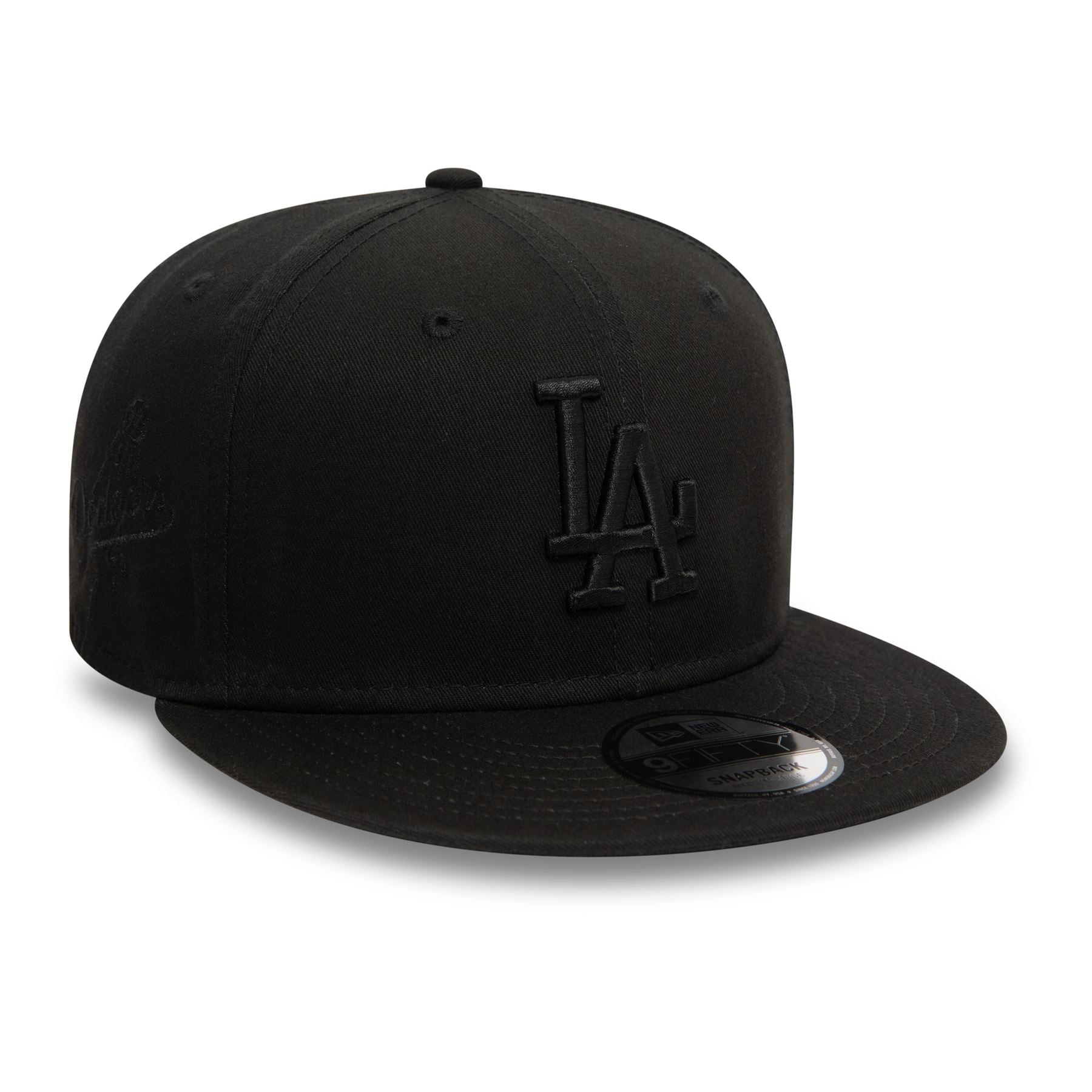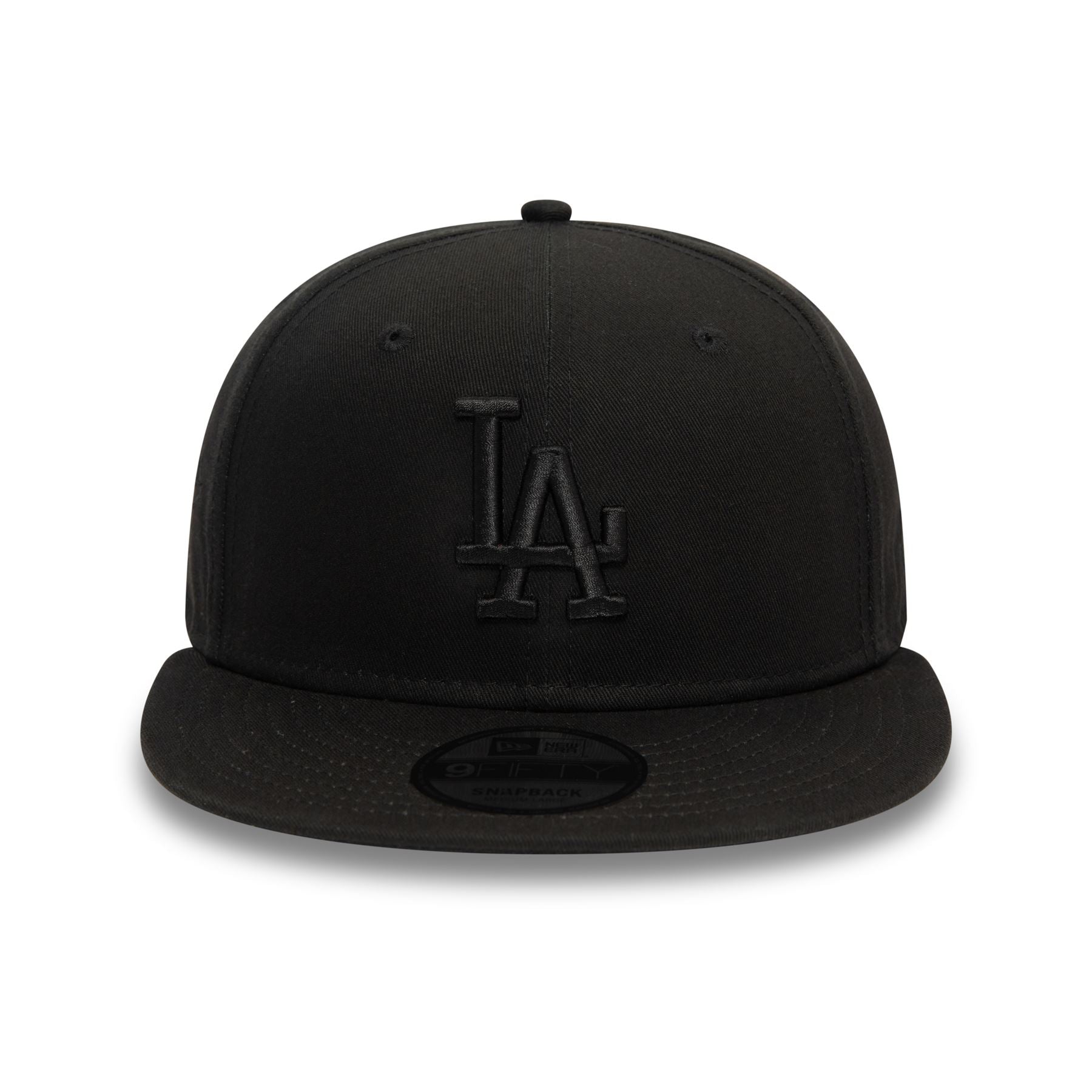Official New Era Mens Monochrome 'LA Dodgers' 9Fifty Cap. Embroidered 'LA Dodgers' logo on front. Embroidered New Era flag on left. 6 panel structured crown. Flat visor with rear snapback fastener. Cap colour black with black undervisor.