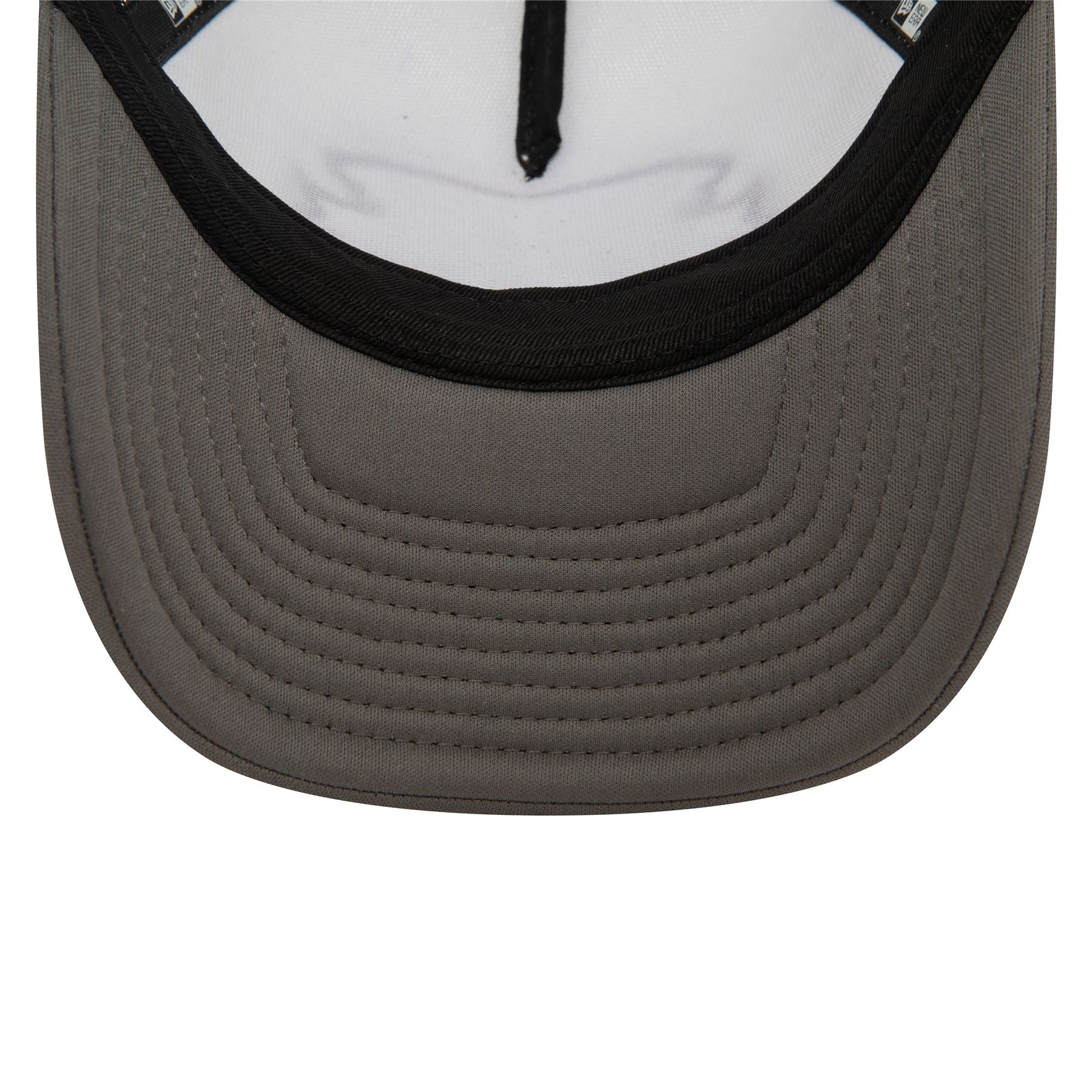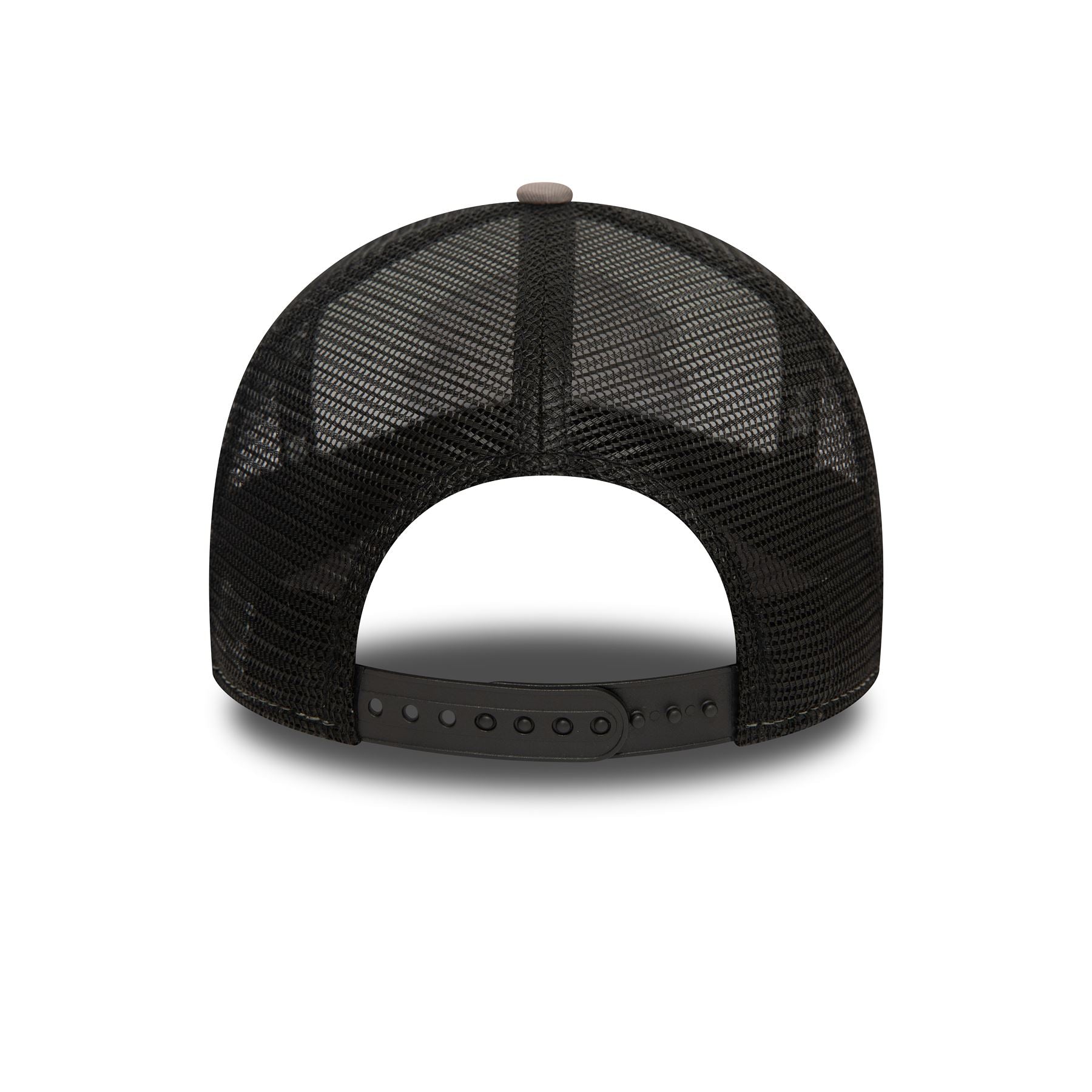 Official New Era Mens NFL Las Vegas Raiders Trucker Cap. Las Vegas Raiders logo on front. Embroidered New Era flag on left. Mesh back and sides. 6 panel structured crown. Curved visor with rear snapback fastener. Cap colour grey with grey undervisor.