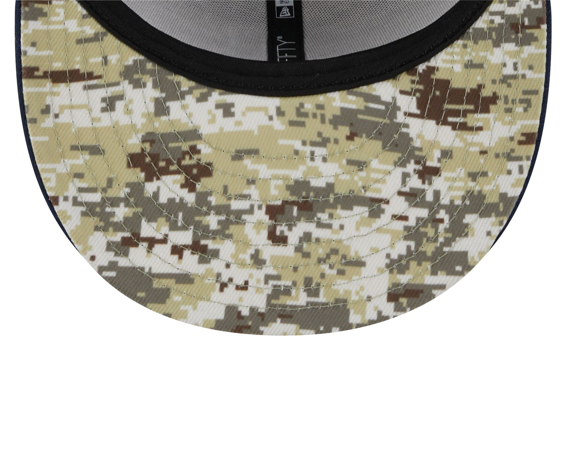 Official New Era Mens NFL 'Seattle Seahawks' Salute To Service Snapback 9Fifty Cap honouring US military personnel and their families. Embroidered 'Seattle Seahawks' Service logo on front. Embroidered USA flag on side. Embroidered New Era flag on left. Embroidered Salute to Service Ribbon with NFL shield on rear. Contrast top button colour. 6 panel structured crown. Flat visor with rear snapback fastener. Undervisor colour camo. Cap colour camo.