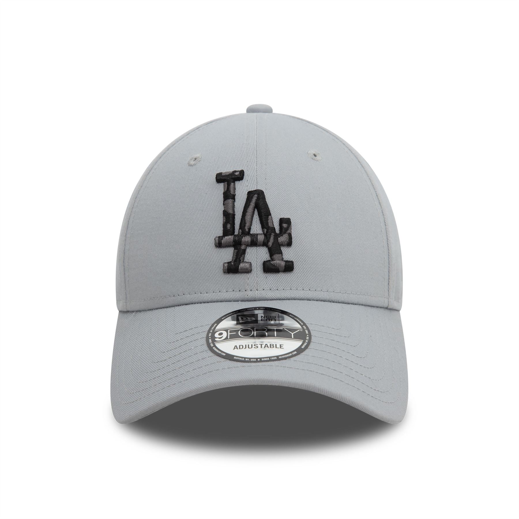 Official New Era Mens Seasonal Infill ' LA Dodgers' 9Forty Cap. Embroidered 'LA Dodgers' infill logo on front. Embroidered New Era flag on left. 6 panel structured crown. Curved visor with rear strapback fastener. Cap colour light grey with light grey undervisor.