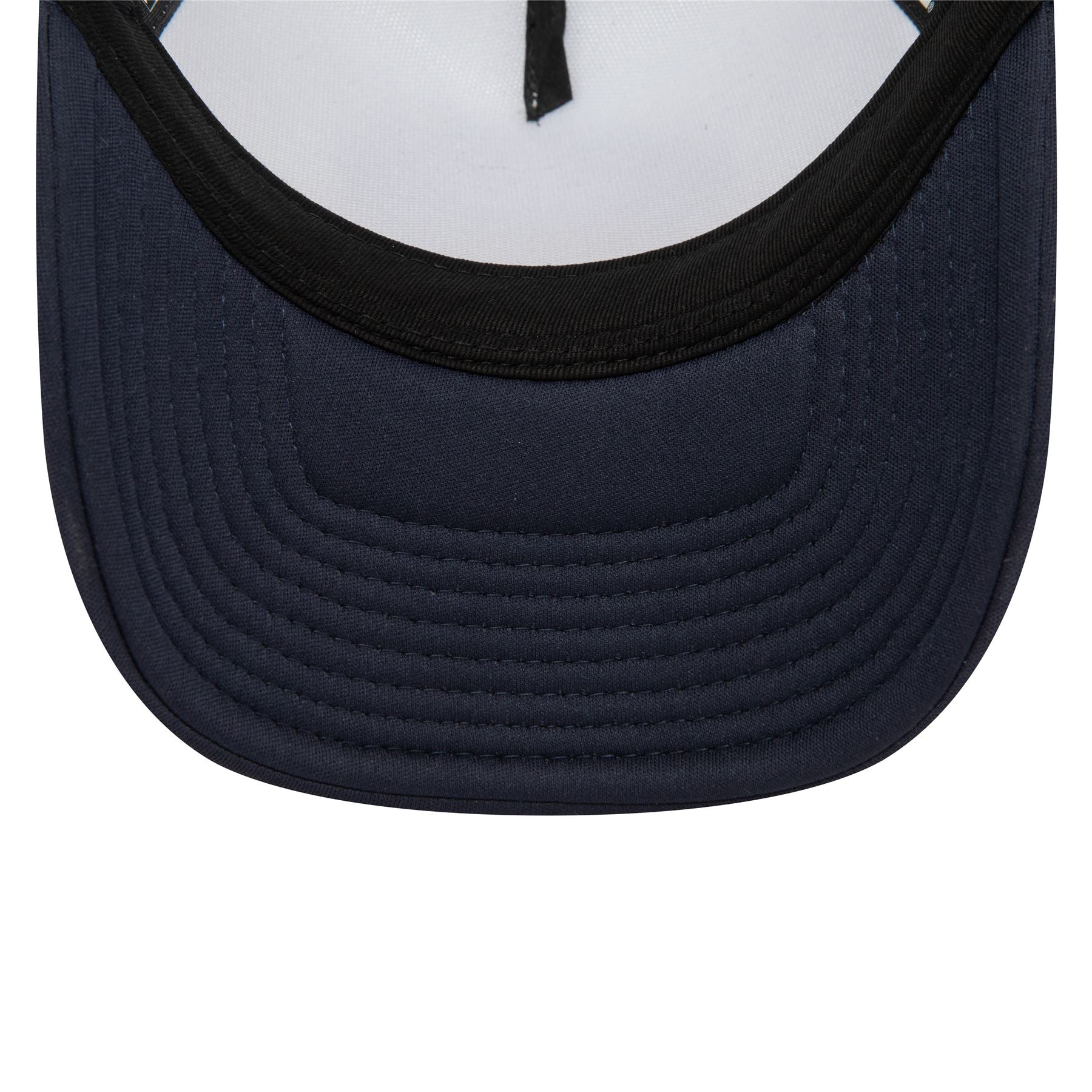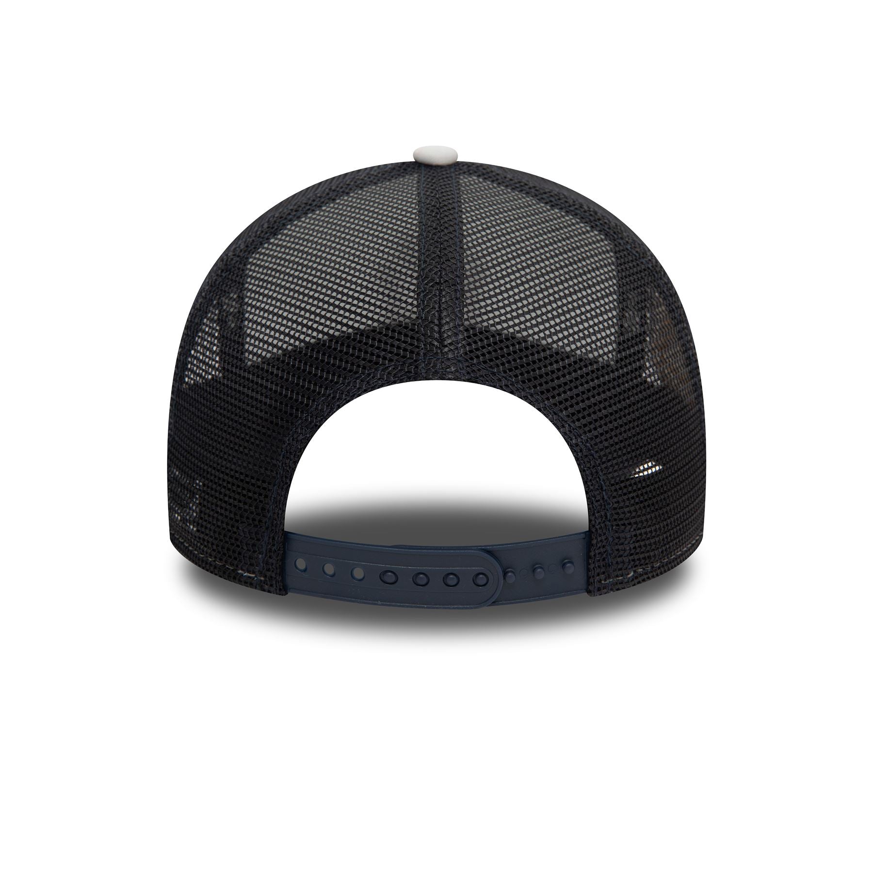 Official New Era Mens World Series New York Yankees Trucker Cap. New York Yankees logo on front. Cooperstown World Series sidepatch on right. Embroidered New Era flag on left. Mesh back and sides. 6 panel structured crown. Curved visor with rear snapback fastener. Cap colour blue with blue undervisor.