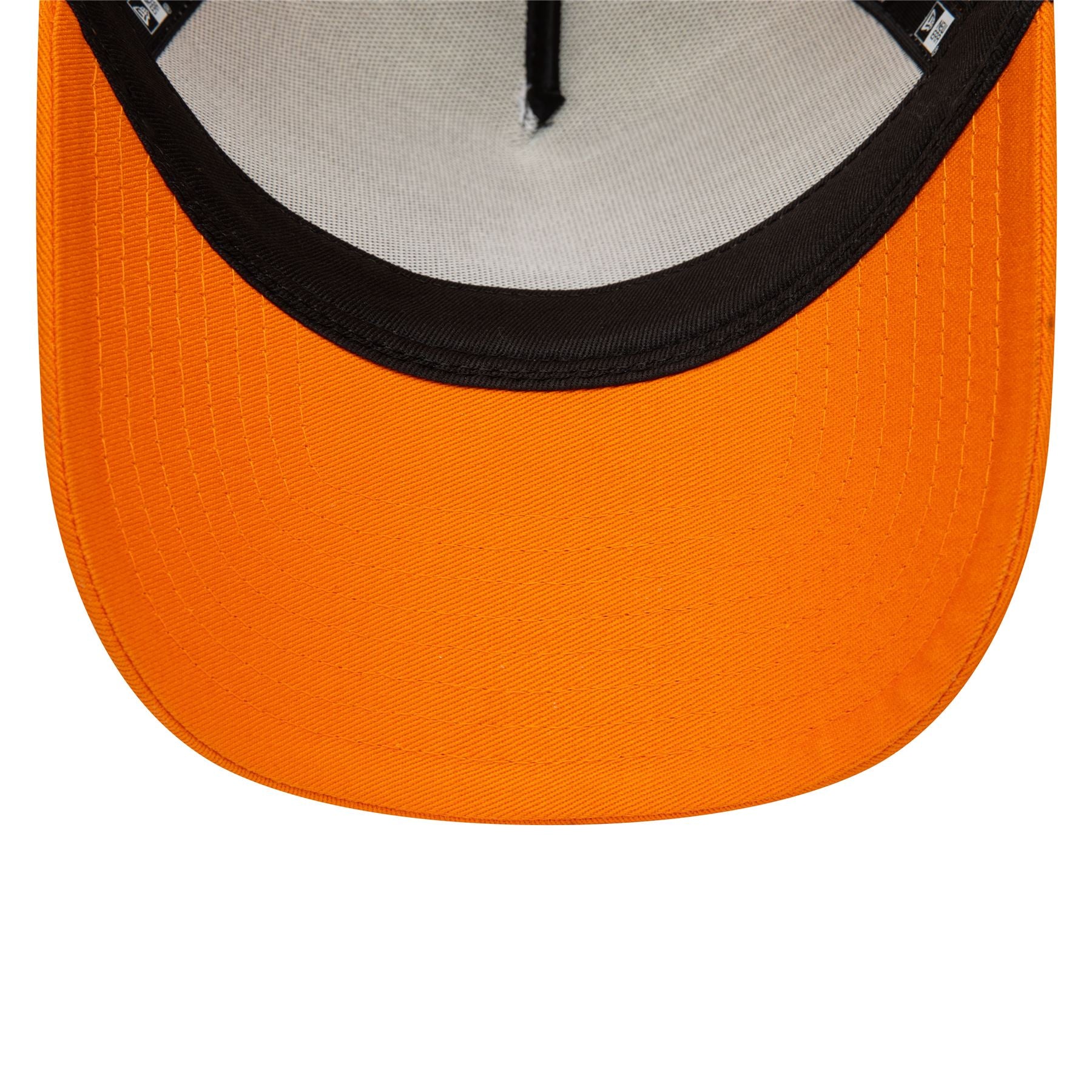 Looney Tunes x Retro Classics The Flintstones A-Frame Trucker Cap. Looney Tunes characters as The Flintstones characters graphic on front. Warner Brothers 100 Years Of Storytelling sidepatch on right. Embroidered New Era flag on left. 6 panel structured crown with mesh back and sides. Curved visor with rear snapback fastener. Colour orange.