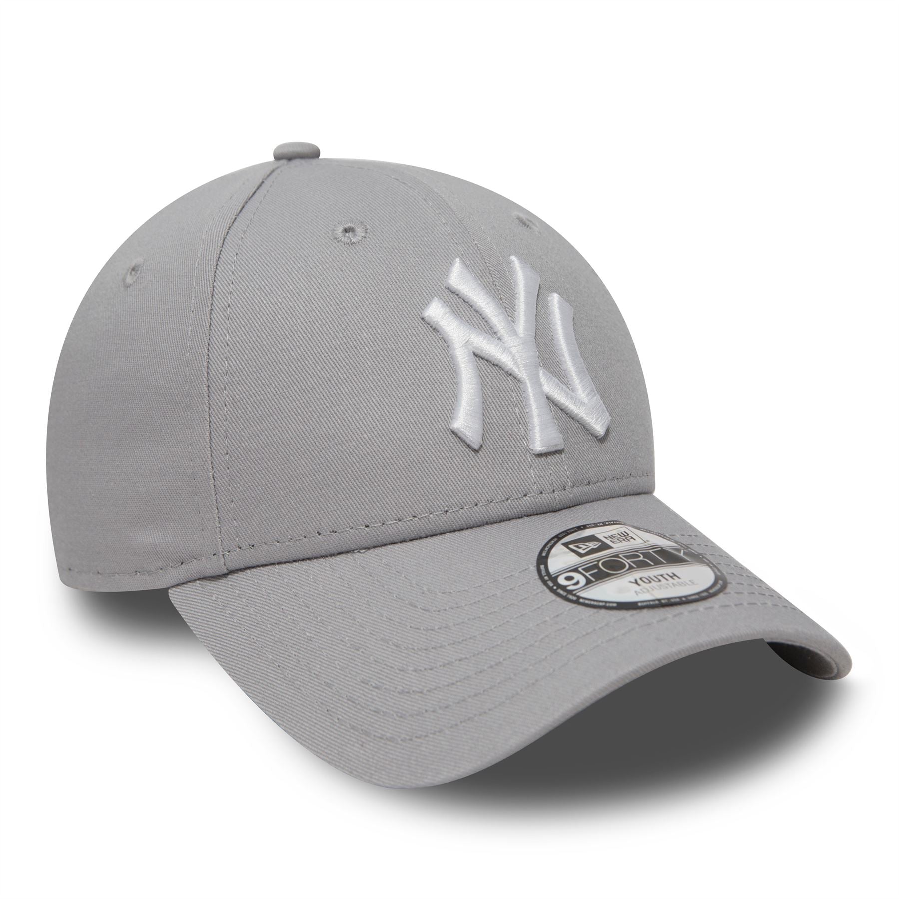 New Era Youth New York Yankees MLB The League 9Forty Cap. Embroidered New York Yankees logo on front. Embroidered New Era flag on left. 6 panel structured crown. Curved visor with rear strapback fastener. Cap colour grey with grey undervisor. 100% Cotton.