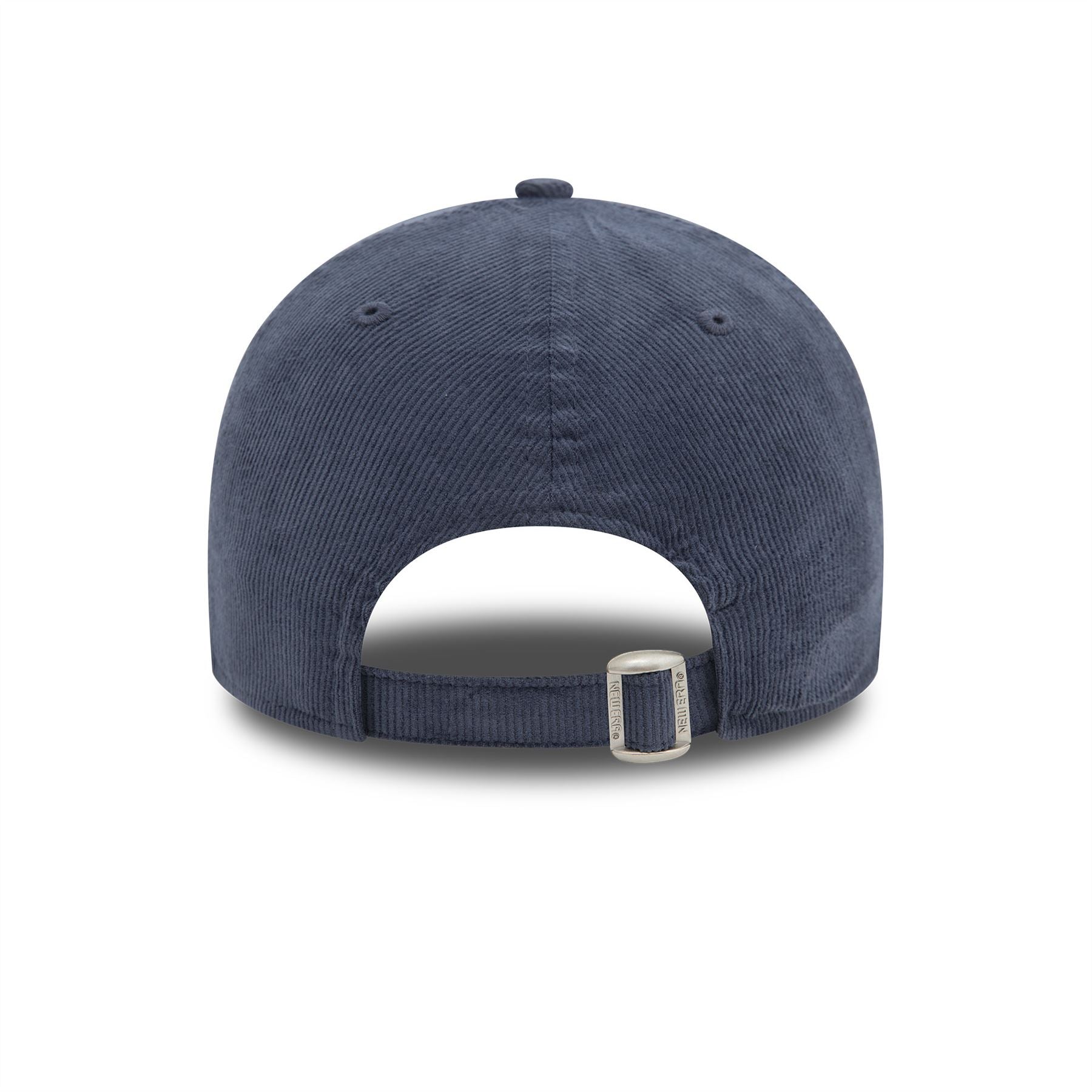 New York Yankees Cord Patch dark blue 9Forty New Era Cap. New York Yankees logo patch on front. Embroidered New Era flag on left. 6 panel structured crown. Made with cord fabric. Curved visor with rear strapback fastener. Blue Cord Cap with blue undervisor.