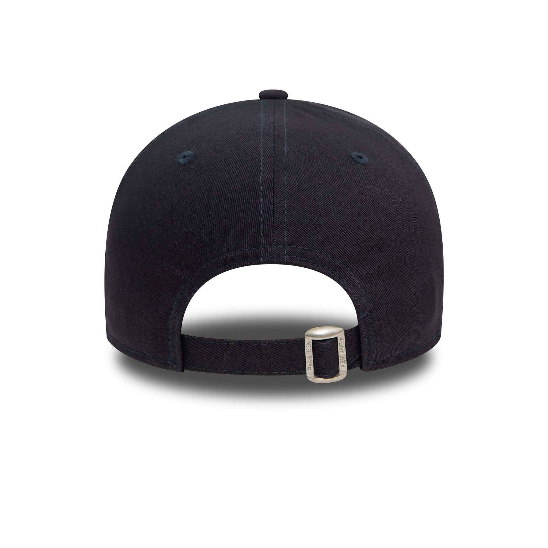 Embroidered New York Yankees logo on front. Embroidered New Era flag on left. 6 panel structured crown. Curved visor with rear strapback fastener. Cap colour navy blue with navy blue undervisor.