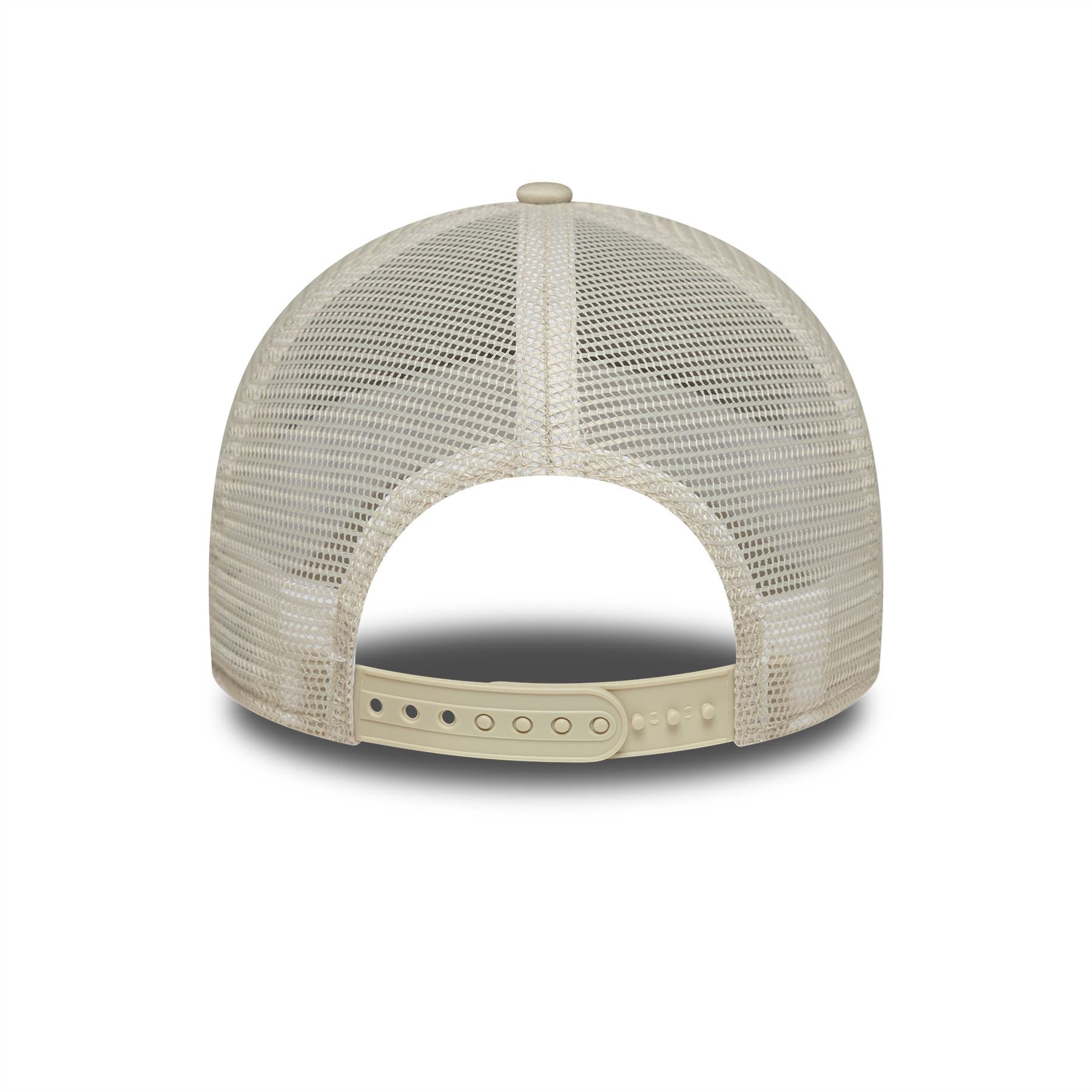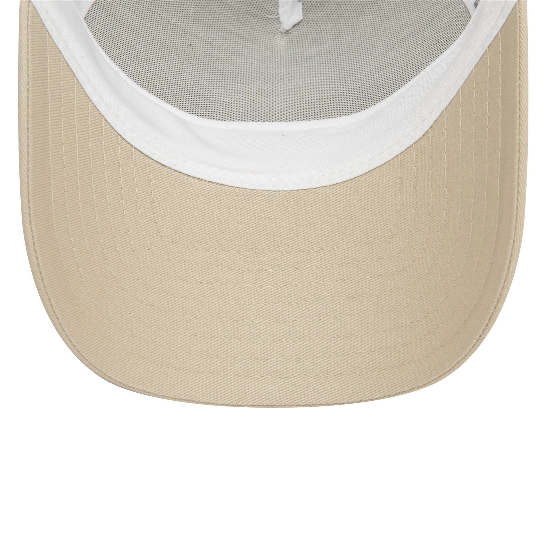 Womens Metallic New York Yankees 9FORTY E-Frame Trucker Cap. Embroidered New York Yankees logo on front. Embroidered New Era flag on left. 6 panel structured crown. Mesh panels on rear and side. Curved visor with rear snapback fastener. Cream coloured Cap with cream undervisor.