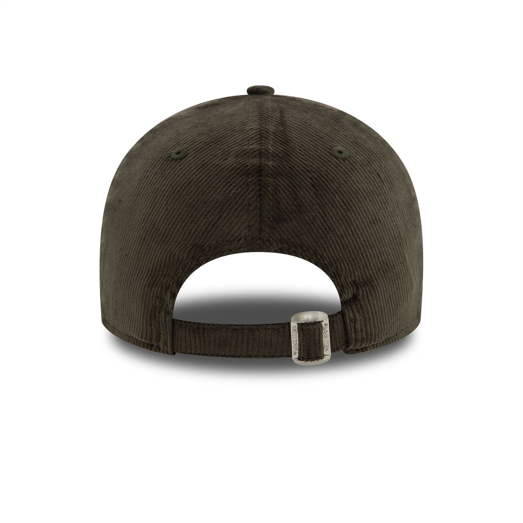 Oakland Athletics Cord Dark Green 9Forty Adjustable New Era Cap. Embroidered Oakland Athletics logo on front. Embroidered New Era flag on left. 6 panel structured crown. Made with cord fabric. Curved visor with rear strapback fastener. Dark green Cord Cap with green undervisor.