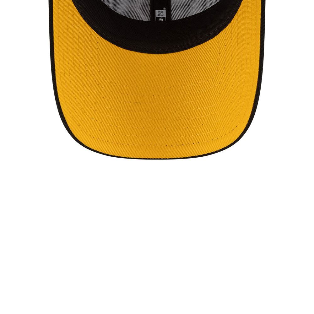 Embroidered Pittsburgh Steelers name logo on front. Dublin wordmark on front left. Dublin Games sidepatch on right. Embroidered New Era flag on left. 6 panel structured crown. Curved visor with rear snapback fastener. 100% Cotton. Black Cap with yellow undervisor.