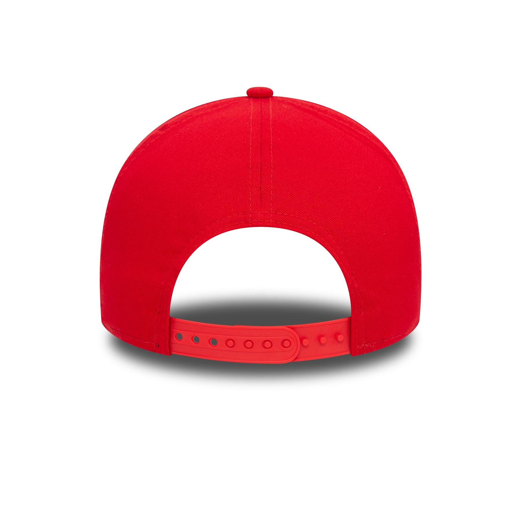 San Francisco NFL Official Team Colours Red 9FORTY E-Frame Adjustable Cap. Embroidered San Francisco logo on front. Embroidered New Era flag on left. 6 panel structured E-Frame crown. Curved visor with rear snapback fastener. Red Cap with red undervisor.