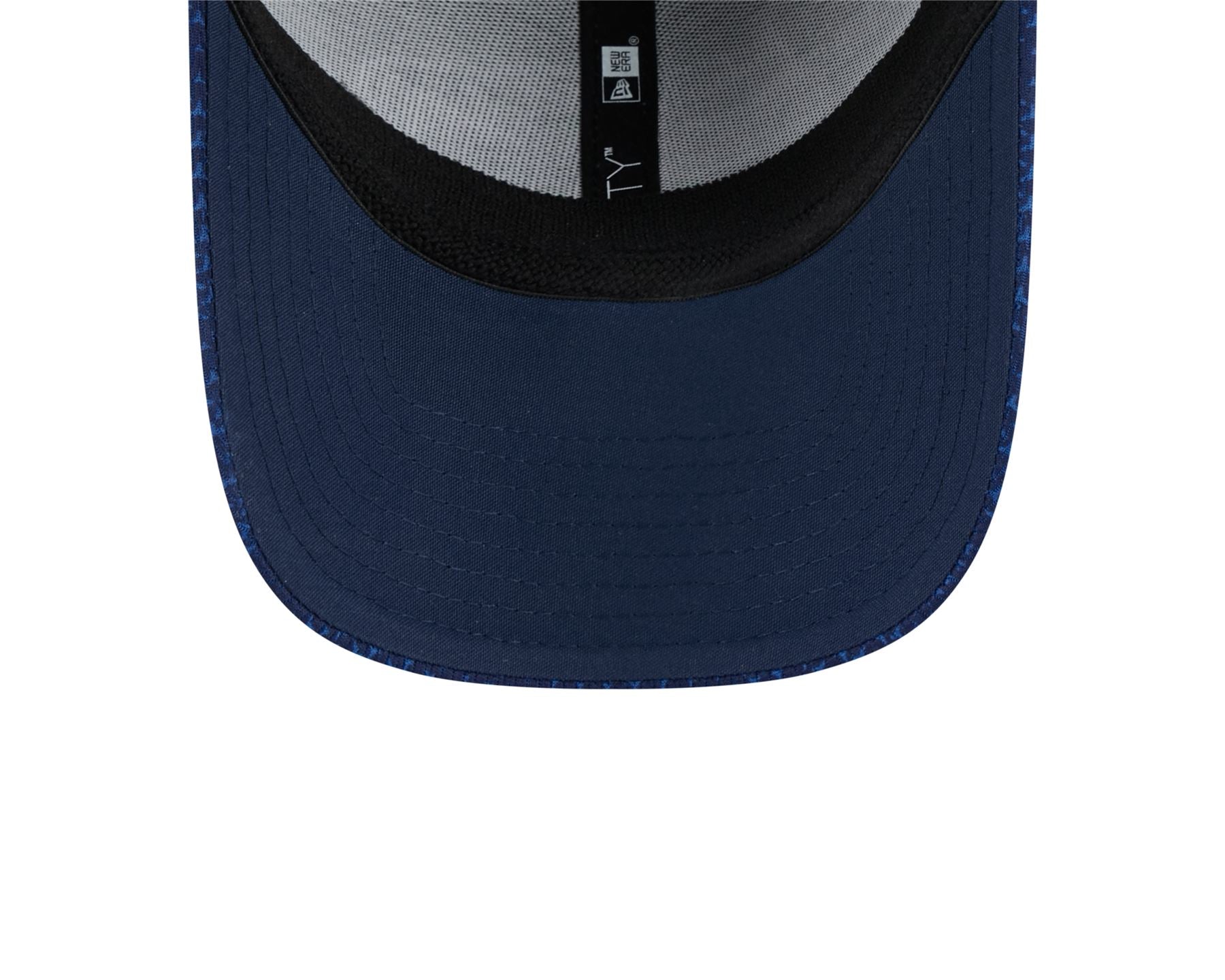 Official Seattle Seahawks 940 Stretch Snap New Era NFL24 9Forty Cap. Embroidered Seattle Seahawks logo on front. Embroidered Seattle Seahawks circular sidepatch on right. Embroidered New Era flag on left. Embroidered NFL logo on back. 6 panel structured crown. Patterned fabric detail. Curved visor with rear snapback fastener. Cap colour blue with blue undervisor.