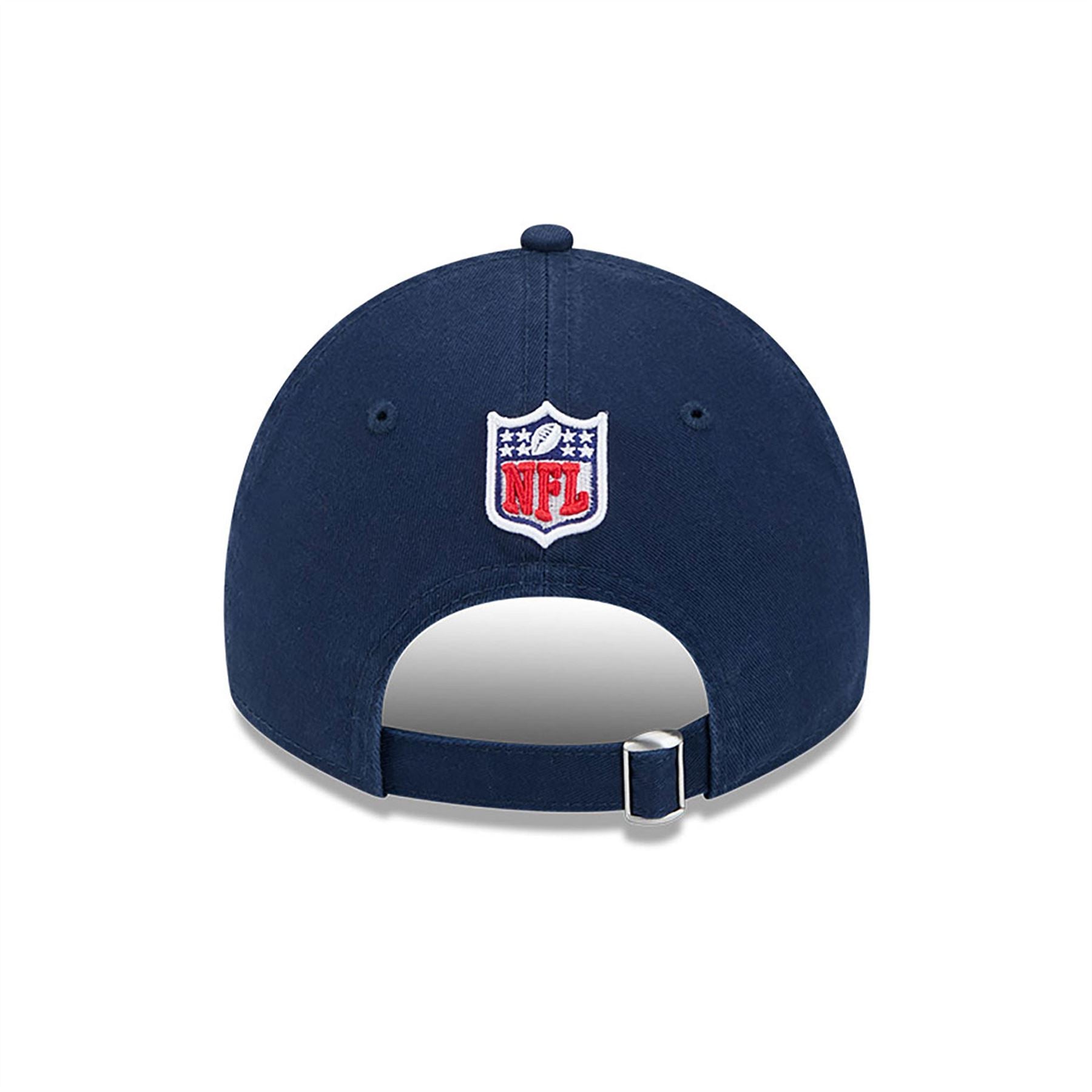 Official "Seattle Seahawks" Adjustable New Era NFL24 9Twenty Cap. Circular Seattle Seahawks patch logo on front. Embroidered 'N' sidepatch logo on right. Embroidered New Era flag on left. Embroidered NFL logo on back. 6 panel unstructured crown that allows you to fold into a bag. Curved visor with rear strapback fastener. Cap colour navy blue with navy blue undervisor.